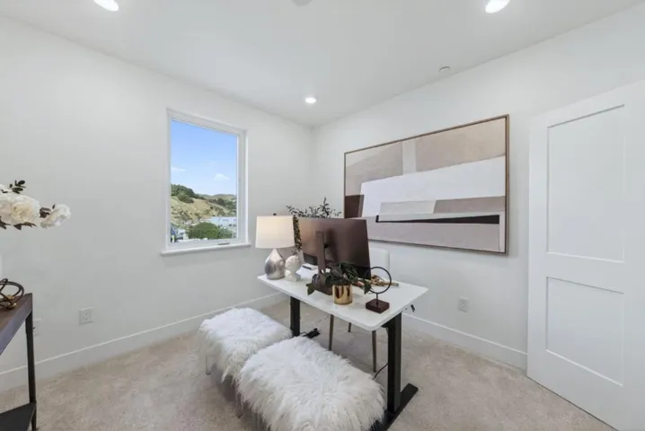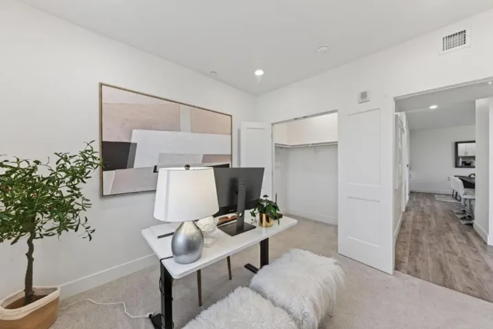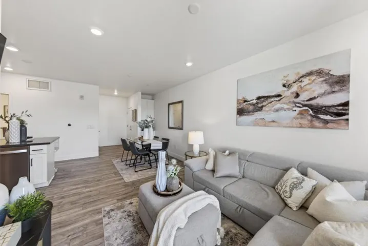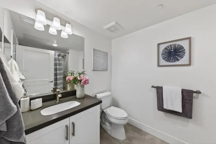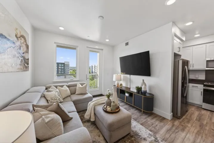 Experience elevated modern living in this beautifully appointed 1,152 sq ft, 3-bed, 2-bath corner residence, ideally situated on the fourth floor with rare mountain views from every room. Built in 2022 in Fremonts highly sought-after Irvington neighborhood, this home blends comfort and style. Step inside to high ceilings, recessed lighting, & stunning LVP flooring with an open-concept layout. The gourmet kitchen flows seamlessly into the family room, featuring quartz countertops, shaker white cabinetry, gas range, & stainless steel appliances. Enjoy your morning coffee or unwind on the private balcony overlooking mountain views. A convenient washer and dryer closet adds everyday functionality. The primary suite features mountain views, abundant natural light, a walk-in closet, and a spa-like ensuite bath with double vanity and step-in shower. Two additional bedrooms are well-sized, ideal for guests, family, or an office. Additional highlights include two parking spaces in a secure gated garage + secure building entry. The community also offers a fitness center and playground. Ideally located near Apni Mandi Farmers Market, and top-rated Hirsch Elementary and Irvington High. Modern design, premium features, and an unbeatable location make this a rare opportunity not to be missed.