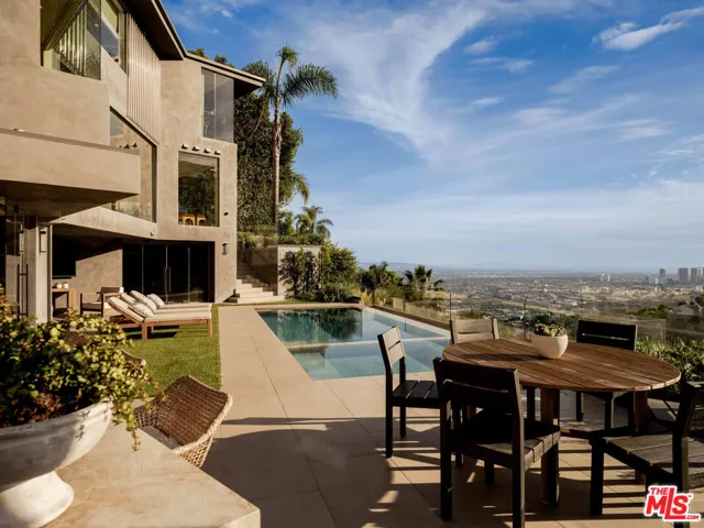 Perched above the Sunset Strip within one of the area’s only gated and secure enclaves, 1778 Viewmont stands as the crown jewel of this private, controlled-access community. Positioned at the end of a quiet cul-de-sac, this approximately 6,300-square-foot modern masterpiece is the largest of only six residences behind the gates, offering a rare level of discretion and security alongside unobstructed jetliner views stretching from the city skyline to the Pacific Ocean. Recently reimagined from the ground up, the residence showcases a refined contemporary aesthetic defined by clean lines, warm textures, and sophisticated materials. Inside, expansive open living spaces are framed by floor-to-ceiling glass, flooding the home with natural light while maintaining a true sense of seclusion an ideal retreat from the city below. White oak floors run throughout, complemented by smooth plaster walls, custom millwork, and designer accent lighting that creates a gallery-like ambiance day and night. The chef’s kitchen is anchored by travertine stone countertops, integrated Wolf and Sub-Zero appliances, and sleek European cabinetry perfectly suited for both everyday living and large-scale entertaining. Seamless indoor-outdoor living connects the main living areas to an expansive terrace featuring a zero-edge pool and spa, lush landscaping, built-in grill, and grassy yard, all oriented toward the panoramic skyline while remaining thoughtfully shielded within this gated setting. Four ensuite bedrooms, including a serene primary suite with fireplace, oversized walk-in closet, and spa-like bath, provide exceptional comfort and privacy. Additional amenities include a state-of-the-art home theater, world-class gym, and spacious den and bar area that open directly to the pool.Offering a rare combination of privacy, security, and exceptional design, 1778 Viewmont Dr is tailored for those who value discretion without compromise. Securely tucked behind gates, yet just moments from the world-class dining, shopping, and entertainment of the Sunset Strip and Beverly Hills.