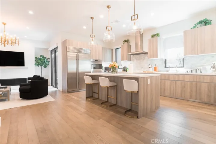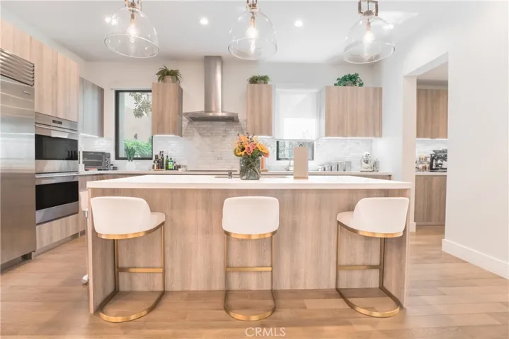 Designed and built by renowned Beverly Hills developer ETCO Homes, the residence showcases superb modern architecture and enduring quality. Interiors are appointed with Sub-Zero and Wolf appliances, custom Italian cabinetry by LineaQuattro, and a curated palette of contemporary European finishes. Designer lighting from RH is thoughtfully integrated throughout, elevating both ambiance and design.