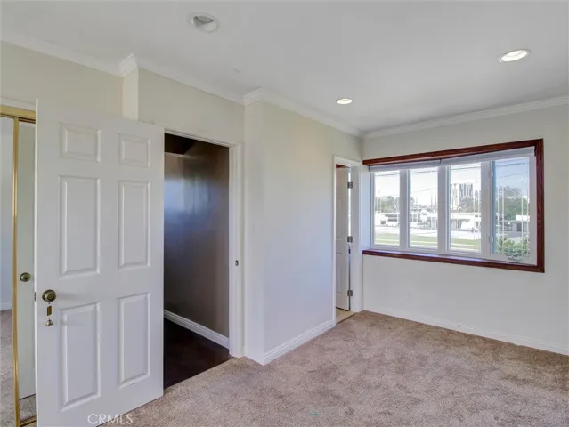 The home offers a flexible layout with well-appointed bedrooms. The rear bedroom features a bay window, plantation shutters, built-in bookshelves, and a desk—perfect for a home office setup. The primary suite includes an updated en-suite bathroom, generous closet space, and plantation shutters. An additional hallway bathroom has also been tastefully remodeled. Upstairs, a large bedroom with a beautiful bay window and newer carpet provides added versatility.