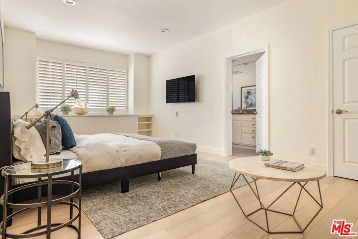 Experience elevated Westwood living in this light-filled end-unit condo at 10511 Ashton Avenue, Unit 305. Offering 3 bedrooms, 4 bathrooms, and 1,626 square feet, this spacious residence combines volume, versatility, and exceptional indoor-outdoor living — complete with a private rooftop deck showcasing sweeping city views. Enter to an inviting foyer that leads to the expansive living room set beneath soaring double-height ceilings, featuring abundant natural light, a custom built-in with a bar, cozy gas fireplace, and direct access to a private balcony. The adjacent dining area is ideal for entertaining, illuminated by a modern chandelier and accented with built-in display shelving. The remodeled kitchen is both stylish and functional, appointed with granite countertops, white shaker cabinetry, stainless steel appliances, and a sunlit breakfast nook. The main level offers exceptional convenience with a powder room and two generously sized bedrooms, inclusive of the primary suite featuring a walk-in closet and a luxe en-suite bath with dual vanities and a tiled shower. Upstairs, a sunny loft with a full bathroom provides versatility, ideal as a third bedroom, home office, or additional living space. Here you can access the home’s standout feature, the private rooftop deck. As one of only a few residences in the building with this feature, you’ll enjoy the best of Southern California living with space to lounge, entertain, and dine al fresco against a backdrop of stunning city views. Additional highlights include light-toned wood floors, in-unit laundry, secure controlled-access parking for two vehicles, guest parking, and HOA dues that cover gas, water, and trash. Ideally located in prime Westwood just south of Wilshire Boulevard, this home is moments from Westwood Village, UCLA, Westfield Century City, top-rated schools, and a variety of lifestyle amenities. A rare opportunity to own an updated, light-filled condo with private outdoor space in one of Los Angeles’ most sought-after neighborhoods.