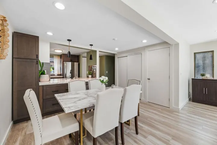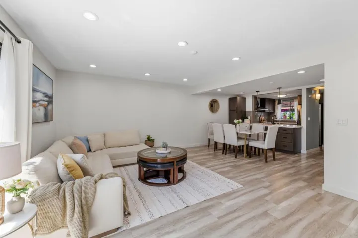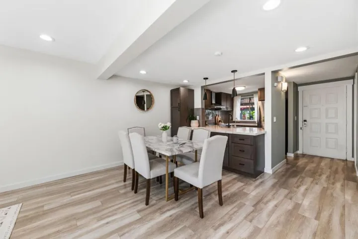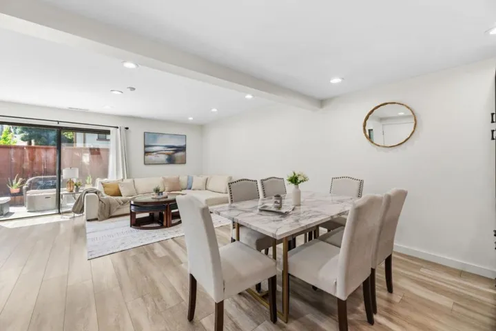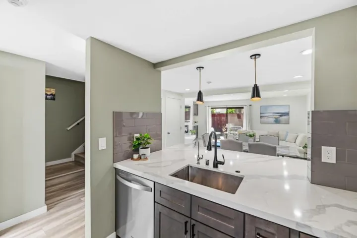 Located in the highly desirable Newpark Village community, this meticulously remodeled, rare corner-unit townhome offers 3 beds and 2.5 baths in a functional two-story layout. Two dedicated parking spaces sit just steps from your front door, making daily living and unloading effortless. The kitchen is thoughtfully designed with rich shaker-style cabinetry, stainless steel appliances, quartz countertops, subway tile backsplash, and abundant storage, seamlessly connecting to the living room. Anchored by a modern tiled electric fireplace, the space is complemented by built-in cabinetry and a glass slider that opens to a private patio. Wide-plank flooring flows throughout, while a half bath with an in-unit washer and dryer completes the main level. Upstairs, youll find three bedrooms, including a spacious primary suite and an updated hall bath. Enjoy the benefits of having access to community amenities, including a pool and tennis courts, with water included in the HOA. Northeast-facing exposure brings in balanced natural light throughout the day. Ideally situated near Costco, NewPark Mall, Tesla, a variety of dining options, and major commute routes, including BART, Highway 880 & 84, along with nearby trails, this home offers a seamless blend of comfort, convenience, and lifestyle.