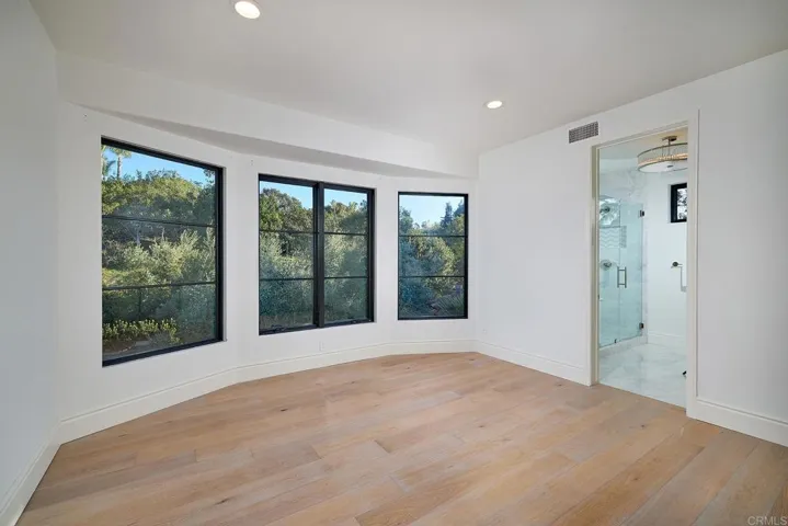 Welcome to New Ranch Lux, a reimagined Spanish modern estate in the heart of the Rancho Santa Fe Covenant, offering exceptional privacy, scale, and lifestyle on approximately 5 all-usable acres. Recently transformed through an extensive $2M+ renovation by Matrix Design Studio, this 5-bedroom, ~5,400 sq. ft. residence blends clean architectural lines with warm, livable design. The thoughtfully designed floor plan lives primarily as a single-level, featuring a luxurious primary suite and two en-suite bedrooms on the main level, with two additional en-suite bedrooms upstairs. Seamless indoor-outdoor living is achieved through vanishing pocket doors that open to resort-style grounds complete with pool, spa, sauna, and expansive entertaining areas. The home is offered partially furnished and move-in ready, with curated designer finishes throughout. The property’s west-facing orientation captures stunning sunsets, while the long, gated drive ensures privacy and presence. The all-usable acreage offers incredible potential for equestrian use, vineyard, tennis or padel court, additional guest house, or recreation amenities. Conceptual plans available for a detached guest house and 6-car enthusiast garage. Ideally located just minutes from the Rancho Santa Fe Covenant Village, beaches, golf, and trail systems, this is a rare opportunity to own a turnkey modern estate with both immediate enjoyment and long-term upside.