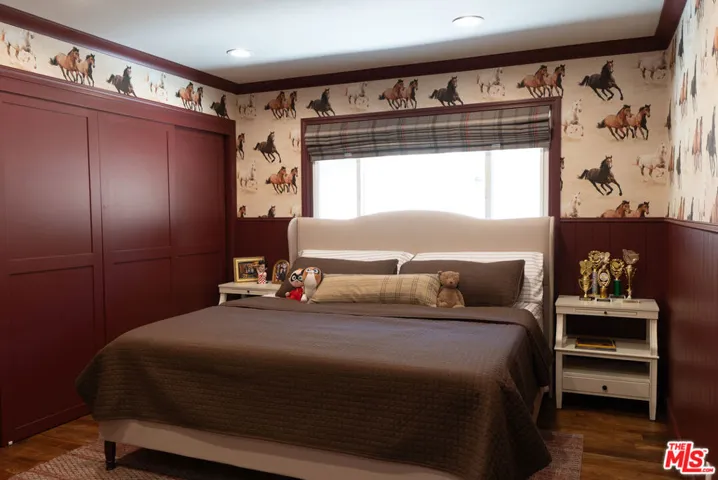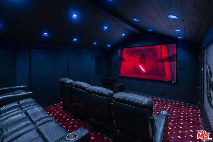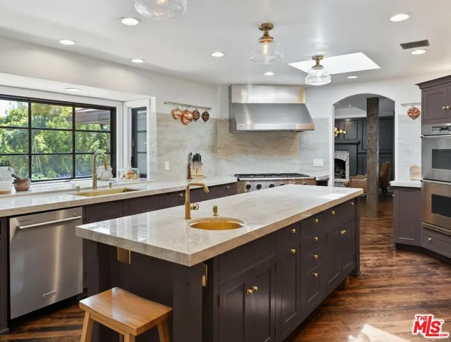 Tucked at the end of a quiet cul-de-sac within the exclusive 24-hour guard-gated community of Bell Canyon, this completely renovated single-story ranch estate sits on approximately 12 acres with sweeping mountain views in every direction and not a single neighbor in sight.No detail was overlooked in the renovation. The chef’s kitchen features custom solid maple cabinetry, a Sub-Zero refrigerator, 6-burner Dacor range, Dacor double ovens, and the same Dekton countertops used in Thomas Keller’s three-Michelin-star restaurant, The French Laundry. The dining room comfortably seats ten, anchored by a custom built-in maple china cabinet with matching Dekton counters and backsplash, and finished with Mind the Gap wallpaper.The custom home theater seats nine in motorized leather recliners with a 120″ screen, 4K laser projector, immersive surround sound, professional black acoustic panels, and programmable color-changing accent lighting.The primary suite is wrapped in navy grasscloth wallpaper with an ensuite featuring floor-to-ceiling Carrara marble, dual vanity, freestanding soaking tub, arched black-framed mirrors, brass sconces, steam shower, makeup vanity, and mosaic marble tile floors.Outside, the private grounds offer a manicured lawn, mature oaks, terraced hillside landscaping, an in-ground trampoline, and a children’s playhouse with loft.Bell Canyon is one of the Valley’s most coveted guard-gated communities adjacent to Hidden Hills and Calabasas with a fitness center, tennis courts, equestrian center, miles of riding and hiking trails, a private park with playground and creek, and a year-round calendar of family events.Zoned to Las Virgenes Unified School District Round Meadow Elementary and Calabasas High School one of the most sought-after public school pipelines in Los Angeles County.