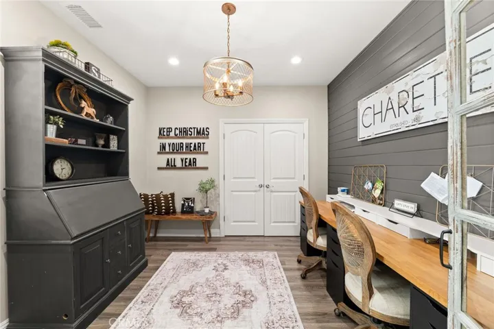 The spacious primary suite provides a private retreat with an upgraded bathroom and thoughtful design details. Additional bedrooms and a dedicated office offer flexibility for a variety of living needs.