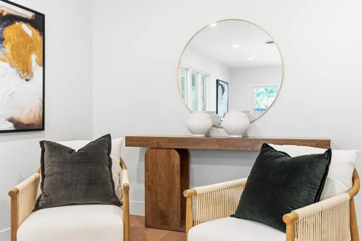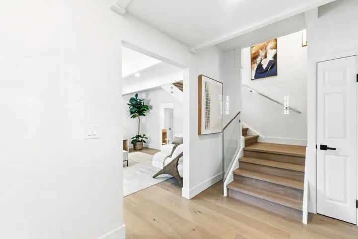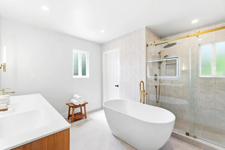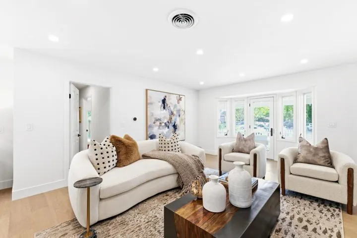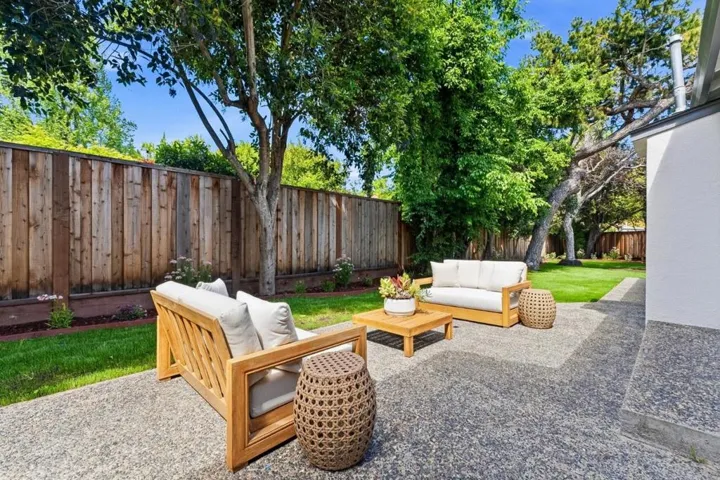 Rare quiet, cul-de-sac privacy, designer upgrades, & future expansion potential in Palo Altos desirable Green Gables. This thoughtfully updated 2-story home offers 3k+ sq ft with 6 BD (incl. 2 en-suites) & 5 BA on an expansive lot surrounded. High-quality materials & top-tier appliances throughout. Chefs kitchen features Thermador high-end appliances, large island, & custom cabinetry. Bathrooms finished w/ Kohler fixtures & Porcelanosa tile. Luxurious primary suite includes freestanding Duravit soaking tub, oversized walk-in shower, dual vanities, designer lighting, & private toilet room. Additional highlights include smart toilets, LED mirrors, & curated finishes across secondary baths. Modern features include floating glass handrail and 2-zone heating system w/ Nest controls. HVAC piping in place for future A/C. Spacious living areas anchored by a contemporary fireplace w/ seamless indoor-outdoor potential via kitchen pass-through. Backyard offers a large lawn ideal for play, entertaining, or pets. Detached office cottage plus a detached 1-car garage. Easy to convert attached 2-car garage into JADU (~400+ sq ft), expanding total to ~3,500 sq ft. Copper plumbing, double-pane windows, newer roof. Close to parks, shopping, commute routes, & top-rated schools.