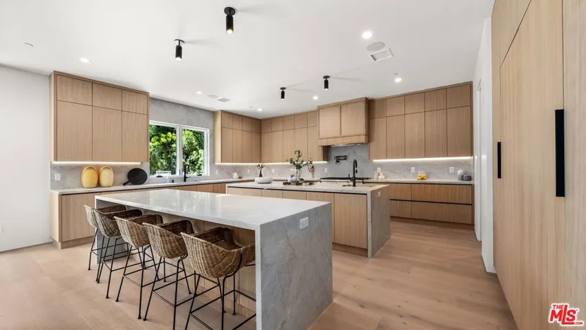 Located in the highly desirable Westdale pocket of Mar Vista, this exceptional new construction offers a rare blend of style, comfort, and thoughtful design. The home features a warm, modern aesthetic with an open-concept layout designed for both everyday living and effortless entertaining. A standout double-island kitchen offers both functionality and visual impact, complete with custom rift white oak cabinetry and elegant Taj Mahal stone surfaces. Just off the main living areas, a built-in bar creates the perfect setting for hosting. Expansive pocket sliders with Fleetwood doors open to create a seamless indoor-outdoor flow, enhancing the overall living experience. Generous living spaces, a dedicated movie room, and an oversized primary suite provide comfort and versatility, while Porcelanosa tile finishes add a refined, modern touch throughout. A rare opportunity in one of Mar Vista’s most sought-after neighborhoodshomes of this size and quality are increasingly hard to find in this pocket.