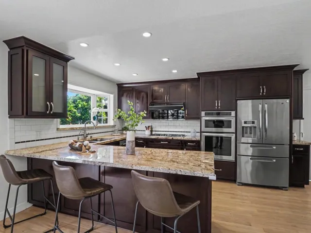 Tastefully updated 3-bedroom home in highly sought-after West San Jose. This inviting residence features an open-concept gourmet kitchen highlighted by a charming bay window, granite countertops, full backsplash, rich dark cabinetry, stainless steel appliances, and a spacious dining areaperfect for both everyday living and entertaining. Both bathrooms have been beautifully remodeled, while the home showcases refinished hardwood floors, dual-pane windows and doors, recessed lighting, and central heating and A/C for year-round comfort. Fresh interior and exterior paint add a crisp, move-in-ready feel. Each bedroom includes built-in organizers for enhanced functionality. Step outside to an expansive backyard designed for relaxation and gatherings, complete with a modern gazebo, storage sheds, and mature fruit trees including Orange and Jujube. Smart home features such as a programmable thermostat and garage door opener add convenience and efficiency. Ideally located near major tech employers such as Apple, Nvidia, eBay and Netflix, and just minutes from premier shopping, dining, and entertainment destinations, with easy access to Highways 280 and 880. A rare opportunity to own a turnkey home in a prime Silicon Valley location.
