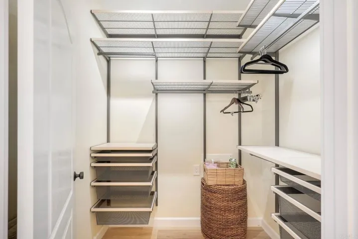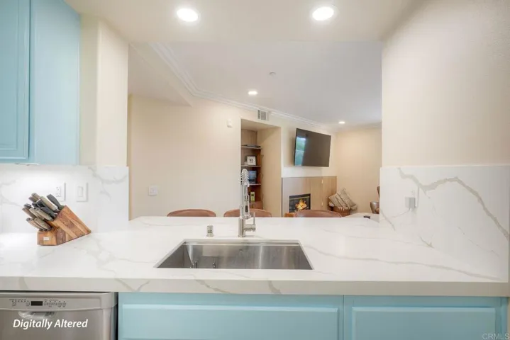 WEST OF THE 5 FREEWAY, discover resort-style living in this stunning, completely renovated corner end-unit, in the exclusive, gated Ocean Pointe community. Located just steps from the Agua Hedionda Lagoon and a short walk to Tamarack beach and Carlsbad Village, this spacious 1,704 sq. ft. residence offers the perfect blend of luxury, comfort, and coastal convenience. Every inch of this single-level home has been meticulously updated with premium finishes, including new laminate flooring, custom trim, modern lighting, and 60” ceiling fans throughout. The chef’s kitchen includes brand-new quartz countertops and backsplashes, painted cabinetry with under-lighting, and top-tier GE stainless steel appliances, including a gas cooktop. The spa-inspired bathrooms offer two primary en-suites that feature brand-new luxury vanities, Kohler soaking tubs, new tile work, and high-end hardware plus a remodeled guest 1/2 bathroom. This smart home includes Google Nest Thermostat (4th Gen), Ring video doorbell, and Schlage electronic smart lock for ultimate peace of mind. Custom storage includes brand-new custom closet systems by The Container Store. In the living room, there is tranquil wooden tiled accent walls with a quartz hearth and a full-motion TV mount ready for your home theater setup. This home offers an exceptional layout & community amenities and is offered fully furnished. This expansive floor plan features two generous primary en-suite bedrooms, a versatile den, a large great room, and an open dining area. The covered patio has views of the serene hillside, greenery and lagoon along with private a private storage room. This is an unbeatable location situated west of I-5, with direct access to the Harbor Drive Trail for walking and biking to the beach and lagoon. It offers convenience & security with gated entry, secure underground parking with two dedicated spots near the elevator, and additional storage. Ocean Pointe offers resort amenities that include a community pool, spa, lush green spaces, BBQ areas, and breathtaking coastal views. This is a rare opportunity to own a turnkey, high-end residence in one of Carlsbad’s most desirable gated communities.