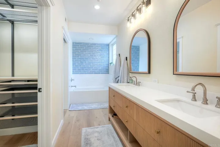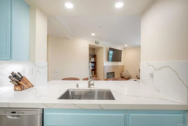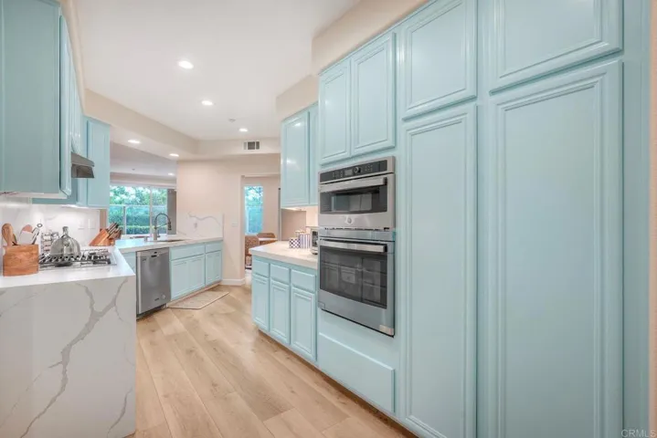Fully Furnished Executive Rental in Carlsbad! West of the I-5 and steps from the water, experience the ultimate S CA lifestyle in this stunning, fully furnished residence. Available for minimum 30-day stays, this completely renovated corner end-unit in the exclusive, gated Ocean Pointe community offers a turnkey sanctuary for those seeking luxury, comfort, and coastal convenience. This spacious 1,704 sq. ft. single-level home has been meticulously updated with premium finishes and high-end modern amenities such as new laminate flooring, custom trim, modern lighting, and 60” ceiling fans throughout. The chef’s kitchen offers brand-new quartz countertops and backsplash, custom painted cabinetry with under-lighting, and top-tier GE stainless steel appliances, including a gas cooktop. The spa-inspired bathrooms offers two primary en-suites featuring brand-new luxury vanities, Kohler soaking tubs, custom tile work, and high-end hardware, plus a beautifully remodeled guest powder room. The sophisticated great room features tranquil wooden tiled accent walls with a quartz hearth and a full-motion TV mount. The expansive floor plan includes two generous primary suites, a versatile den, a large great room, and an open dining area. There is brand-new custom closet systems by The Container Store and a private storage room off the patio. The home equipped with a Google Nest Thermostat (4th Gen), Ring video doorbell, and Schlage electronic smart lock for ultimate peace of mind. Enjoy the ocean breeze from your large, covered patio with views of the serene hillside, lush greenery, and the lagoon. As a guest of Ocean Pointe, you’ll have access to resort style amenities of the community pool, spa, BBQ areas, and breathtaking coastal views. Enjoy the prime location with direct access to the Harbor Drive Trail for walking or biking to Tamarack Beach and the lagoon. There is gated entry and secure underground parking with two dedicated spaces located near the elevator. You are perfectly positioned just a short walk from the vibrant shops and world-class dining of Carlsbad Village and the pristine sands of Tamarack Beach. Whether you are here for a seasonal getaway or a corporate relocation, this high-end residence offers a rare opportunity to live like a local in one of Carlsbad’s most desirable communities.