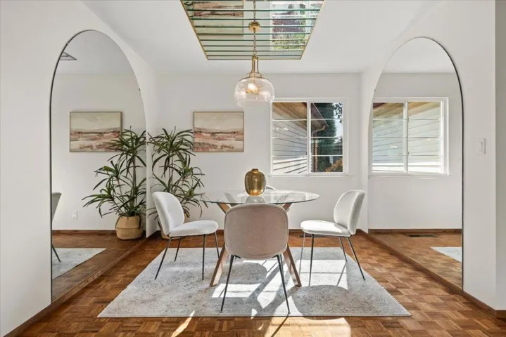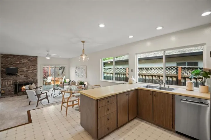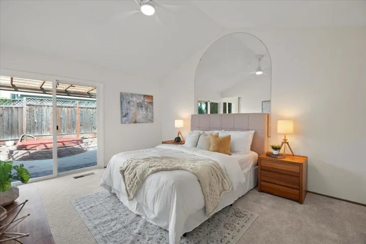 Prime Sunnyvale location on an east-facing corner lot, tucked within one of the quietest pockets of the Ponderosa Park neighborhood. Vaulted ceilings and generous dual-pane windows fill the home with natural light, enhancing the open feel throughout. Move-in ready with new carpeting and fresh interior paint. Thoughtfully designed floor plan featuring a spacious living room with vaulted ceiling, separate family room, breakfast nook, and formal dining area ideal for both everyday living and entertaining. The primary suite offers vaulted ceilings and direct access to the backyard, creating a bright and relaxing retreat. The family room centers around a cozy wood-burning fireplace with seamless indoor-outdoor flow. The outdoor spaces are equally inviting, with refreshed front landscaping and a private backyard with pavers perfect for relaxing or hosting. Enjoy walkability to Ponderosa Elementary and Ponderosa Park, along with unbeatable commuter convenience, less than a mile to Caltrain and easy access to Hwy 101, Hwy 280, Central Expressway, and Lawrence Expressway. Proximity to major employers including Nvidia and Apple, plus shopping and dining at Downtown Sunnyvale, El Camino Real, Costco, and Whole Foods.