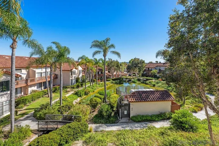 Exceptional upper corner residence in the highly sought-after Arborlake community of Carmel Valley. This light-filled single-level 2-bedroom, 2-bath home features soaring vaulted ceilings that create an open, airy ambiance throughout. Ideally positioned with tranquil lake views just outside your door, the home offers a rare blend of privacy, serenity, and natural beauty. Thoughtfully refreshed, the interior showcases new luxury vinyl plank flooring, fresh designer paint, air conditioning, and updated lighting, delivering a clean, modern aesthetic. The kitchen is appointed with granite countertops and stainless steel appliances, seamlessly opening to the main living area—perfect for both everyday living and effortless entertaining. Enjoy a premier location within Arborlake, known for its lush, park-like setting with scenic lakes, streams, and walking paths. Resort-style amenities include a clubhouse, pool, two spas, and tennis courts. Ideally located near shopping, dining, and Carmel Grove Park, and just minutes to Torrey Pines State Beach and major commuter routes. Situated within the boundaries of top-rated schools including Torrey Pines High School and Canyon Crest Academy. A rare opportunity to own in one of Carmel Valley’s most desirable communities.