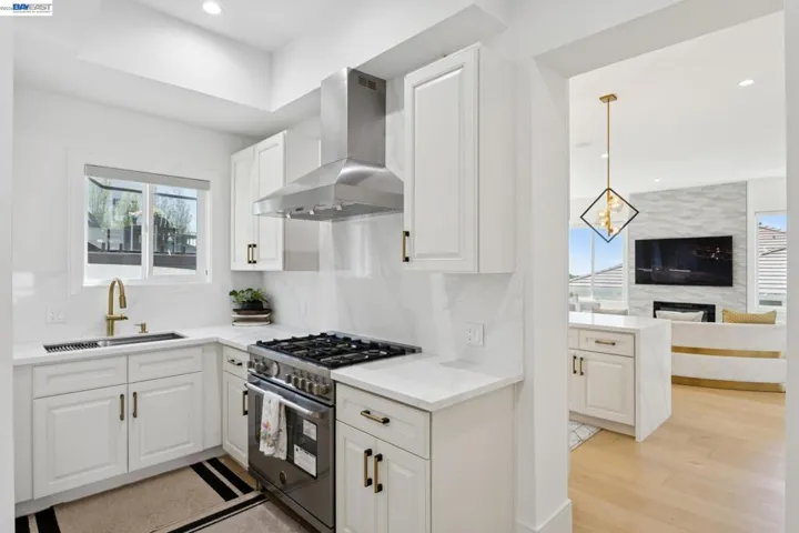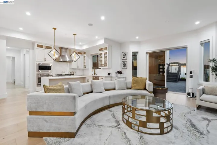 Stunning custom-built home in an exclusive gated community in the Fairview District with breathtaking Bay and SF skyline views. This 4-bedroom, 4-bathroom residence offers luxurious living with all ensuite bedrooms featuring walk-in closets. Step through the grand double doors into a soaring entry with a circular glass staircase and a custom chandelier. The open-concept layout features rich hardwood floors throughout, two full kitchens, including a prep kitchen, and two laundry rooms one on each level for added convenience. The main kitchen features premium appliances, quartz countertops, and modern finishes. Multiple view decks and large windows showcase panoramic vistas. The primary suite offers a spa-like bath with a soaking tub, walk-in shower, dual vanity, and custom tilework. Additional highlights include a paid-off solar system, EV charger, whole-house ventilation system, and beautifully landscaped outdoor spaces. A rare opportunity to own a showstopping home with privacy, functionality, and views in the Bay Area.