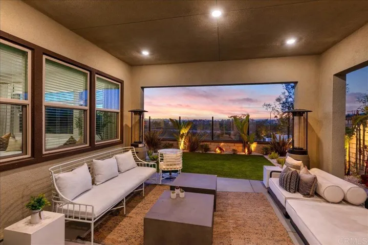 This home is not staged — it’s simply how the sellers live. Meticulously maintained and incredibly tidy, it offers the feel of a model home while being fully lived in — and the photos truly don’t do it justice. Situated on a desirable corner lot, this turn-key luxury home features 5 bedrooms, 3 full baths, and 1 half-bath, plus a spacious loft, high ceilings, and a 2-car garage with over 2,900 sq. ft. of elegant living space. A highly desirable downstairs en-suite bedroom with a private full bathroom offers excellent flexibility for multigenerational living, extended guests, or a private home office setup, adding both comfort and functionality to the home’s thoughtful layout. Every finish has been carefully selected and impeccably completed — just move in and start living your best life. Enjoy stunning Luxury Vinyl Plank flooring throughout the main living areas and plush, comfortable carpet in all bedrooms. The spacious Primary Suite features beautiful marble tile, a walk-in closet, and a large spa-inspired bathroom with dual sink vanity, luxurious soaking tub, and separate oversized shower. The modern kitchen is complemented by sleek stainless-steel appliances, and the washer and dryer are included, making this home truly hassle-free. The expansive landscaped backyard features a California Room perfect for entertaining, with all stylish outdoor furniture included. Located within a gated community offering privacy and security, residents enjoy access to fantastic amenities including a sparkling pool, tot lots, and parks. Commuting is a breeze with easy access to Highway 78, placing you just minutes from Escondido, Carlsbad, and Oceanside. Nearby Discovery Lake and Double Peak hiking trails, golf, shopping, dining, and recreation are all right at your doorstep.