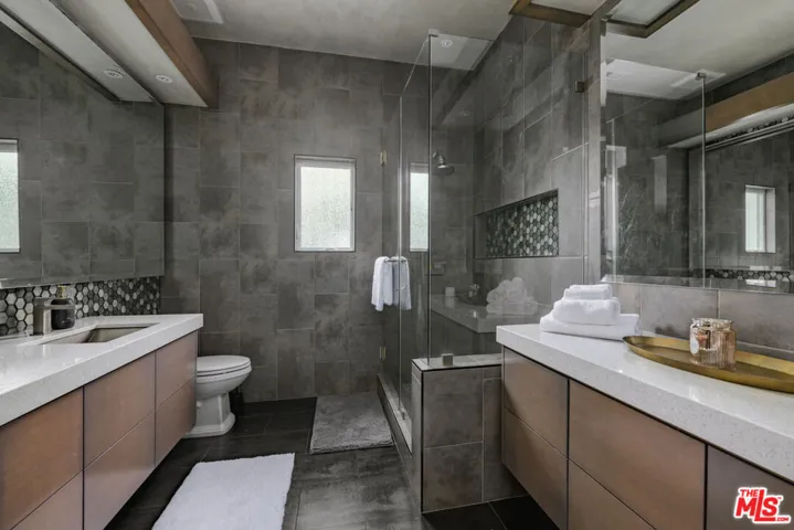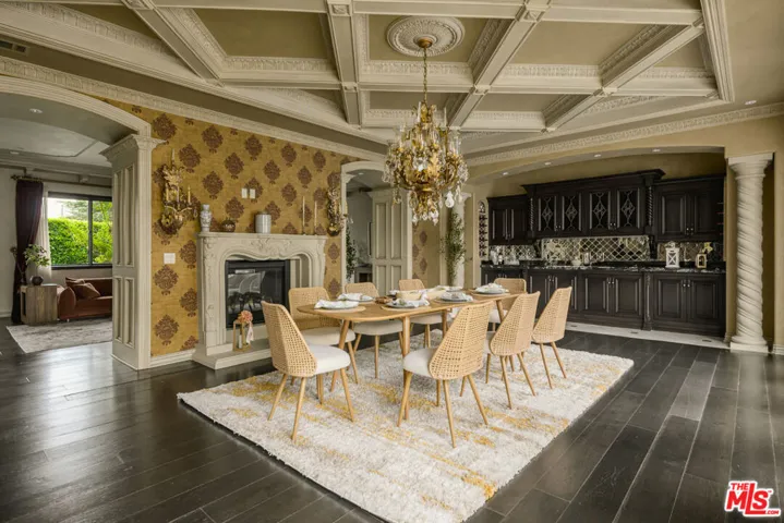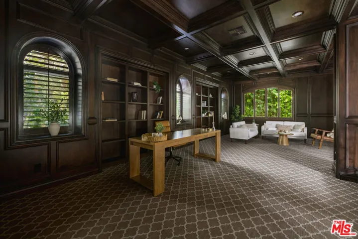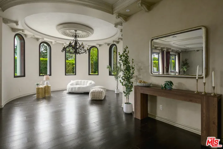 Set behind gates in prime Los Feliz this Mediterranean estate dazzles with beauty and grandeur, delivering endless space and a pool on expansive grounds. Sheltered from the street by high hedges and layered landscape, the stunning residence blends classic Spanish character with refined modern updates. Bathed in natural light, the home showcases signature coved ceilings, graceful archways, picture windows and tranquility. The estate spans approximately 9,633 sq ft with each space flowing effortlessly to the next which is grand yet intimate. A formal living room, anchored by a stately fireplace sits adjacent to the dining area, while the chef’s kitchen with top-tier appliances and custom cabinetry flows seamlessly to the family room with 17 ft ceilings. A luxurious movie theater with private bar and top of the line sound system further impress while the wood paneled spacious office is both elegant and timeless. Six en-suite bedrooms are thoughtfully positioned with gorgeous baths including a primary suite of impressive scale and serenity. There is an additional bonus space to set up for a creative studio or home gym. The completely private backyard is a dream with sun-drenched saltwater pool w/spa and cascading waterfall. Large four car garage and off street parking for seven cars. You’re moments from neighborhood favorites All Time, Little Dom’s, Wilde’s, Maru, Griffith Park trails and everything Los Feliz has to offer.