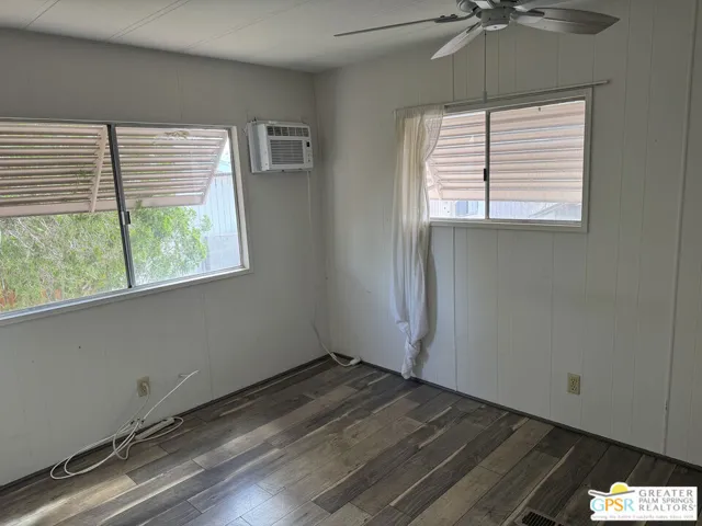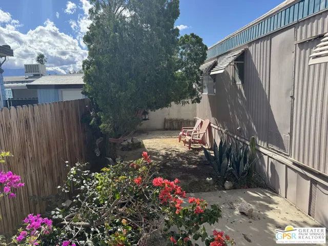 Welcome home to Desert View Mobile Home Club. Very private community which is located in east Desert Hot Springs. This 2 Bedroom 1.5 Bath Mobile Home is ready for your updates. It features an open great room in it’s approximately 800 sf and has a lovely rear yard with trees. The great room features a mini-split heat pump and the main bedroom offers a window wall Air Conditioning unit. The front bedroom has it’s own half bath, with toilet and sink. This home is very close to the large clubhouse and pool and spas. Why not make this great home your new home today.