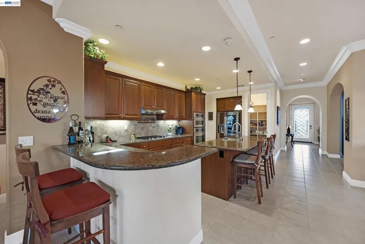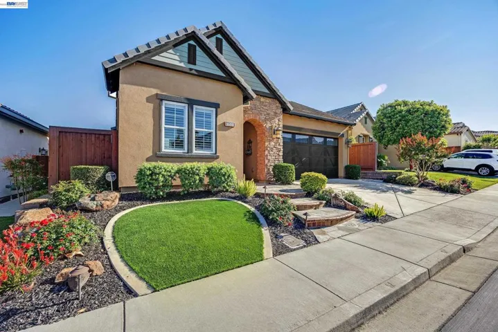 Highly upgraded Costa Dorada model located in the sought-after 55+ community of Trilogy at The Vineyards. This beautifully enhanced home stands out from the moment you arrive, featuring an elegant etched glass front door, extensive crown molding, upgraded lighting, and professionally designed front and back landscaping that creates both curb appeal and a warm, inviting atmosphere. The kitchen blends style and function with JennAir stainless steel appliances—perfect for everyday living and effortless entertaining. Step outside to your own private, resort-style backyard. Designed for both relaxation and hosting, it features two custom water fountains with lighting, travertine hardscape, and an extended covered patio with a ceiling fan—creating a peaceful, upscale outdoor retreat. Energy efficiency is already in place with owned solar (24 panels), helping keep utility costs low. (See Disclosure link for full list of upgrades) Located in Trilogy at The Vineyards, residents enjoy access to Club Los Meganos, offering indoor and outdoor pools, a state-of-the-art fitness center, pickleball and tennis courts, on-site dining, and a full calendar of social activities. This is more than a home—it’s a lifestyle upgrade in one of Brentwood’s most desirable 55+ communities. See Disclosure link for full list of upgrades
