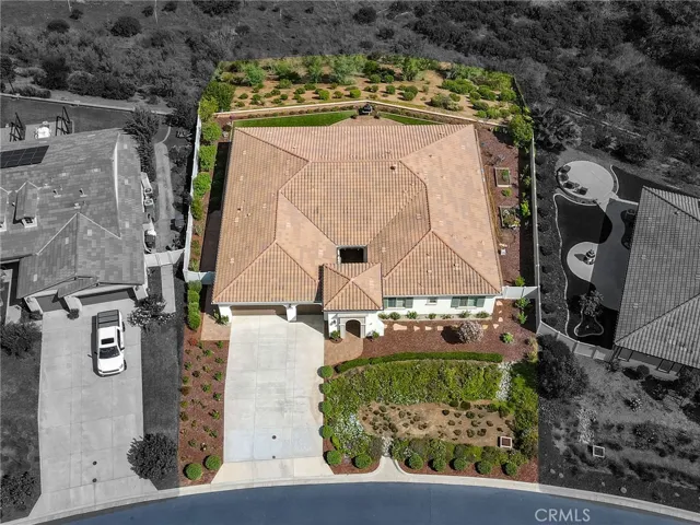 Enjoy breathtaking views of rolling hills from the living room and covered patio, where a beautiful three-tier fountain provides a serene backdrop. The thoughtfully landscaped grounds feature water-efficient plants, mature greenery, and raised garden boxes. An expansive side yard offers room for a future pool or even an infinity-edge retreat.