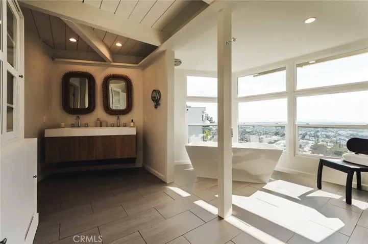 Set above the iconic Sunset Strip on a quiet hillside street, this light-filled architectural home offers a rare combination of privacy, volume, and seamless indoor-outdoor living in the Hollywood Hills.