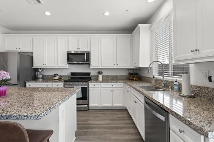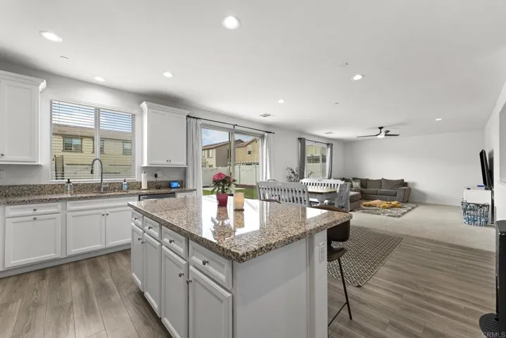 Immaculate Pulte Pinewood Home in highly coveted Spencer’s Crossing community featuring 5 Large Bedrooms, 3.5 Baths plus a den/office, and a large loft and over 3300 SF. This two-story home has over $80,000.00 in premium upgrades inside and out. The open floor plan has flowing luxury vinyl plank floors, a guest suite downstairs with a full bath, high ceilings with upgraded 8′ interior doors, and custom blinds for perfect control of natural light. The kitchen and dining area are open to a large family room, making it ideal for large gatherings, plus a bonus activity center or flex office space. Upstairs the primary suite is gorgeous and large enough for a King Bed set and sitting area. You will love the walk-in closet. The bath area has a soaking tub, a separate shower, and two sinks. The loft upstairs is yet another great space for multiple uses, and the 3 additional bedrooms are large, open, and bright. The exterior front area is easy maintenance, and the back has a lovely patio area for a future Pergola or firepit. Easy care artificial turf is excellent for activities, entertainment, and games. You will love the raised garden boxes, sandbox, and passion fruit trees, all on drip irrigation, and also room for a pool. Home has Leased Sunpower Solar Panels with 4.2KW. HOA includes Pools, Parks, Recreation Center, Sports Park, and more. Minutes to schools, shopping, freeways, and Temecula Wine Country.