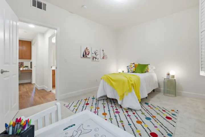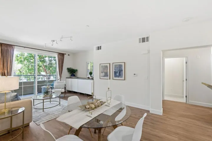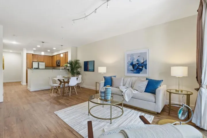 Refined 2BR/2BA in the sought-after Park Broadway community in Millbrae a – luxury condominium building first-floor home offering high ceilings, modern open floor plan, orientation along the Broadway side, providing both privacy and serene neighborhood views. 2 garage spots! The interior has been thoughtfully updated with new flooring and a fresh paint palette with modern color scheme. A contemporary kitchen with granite countertops and stainless steel appliances flows into an expansive living and dining area, designed for both entertaining and everyday living. A private balcony with additional storage extends the usable space & make this a most inviting home on the Peninsula! The primary suite boasts a walk-in closet and en-suite bath. Additional elements include a built-in office nook, in-unit laundry, central heat and air conditioning, and secured garage parking. The community features outdoor spa, the indoor fitness center, and an outdoor BBQ area! The location is close to Millbrae downtown corridor, ample dining and shopping options, as well as convenient access to BART, Caltrain, San Francisco International Airport, and major commuter routes – positioning this home as a well-balanced combination of design, volume, and connectivity.