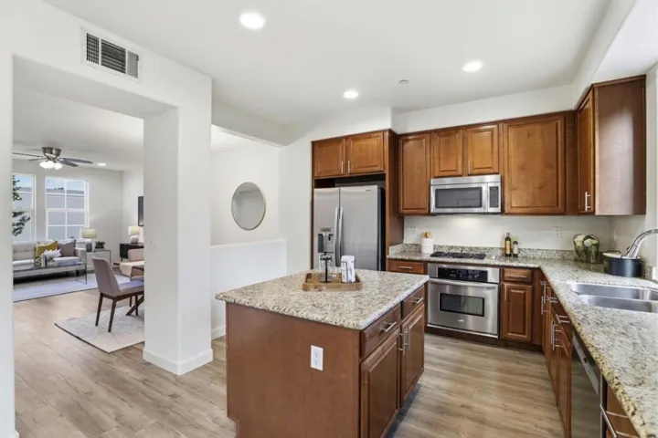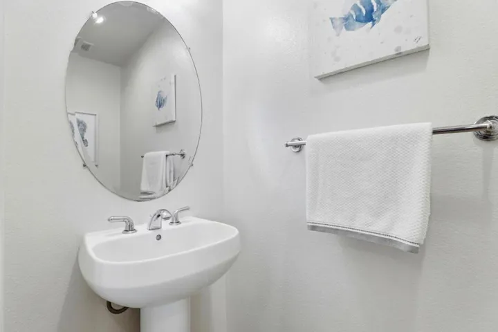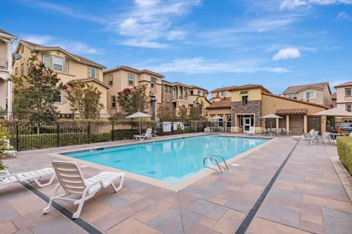 Welcome to this North-facing townhome in the gated Terra Serena community, featuring the most sought-after floor plan and access to nearby top-rated schools: Pearl Zanker (10/10), Rancho Middle (9/10), Milpitas High (9/10) & Stratford. This 1,817 sq. ft. home includes 3 bedroom, 2.5 bath and a den/bonus room offering rare privacy & scenic mountain views w/ no neighbors directly in front. The interior is flooded w/ abundant natural light through massive windows and high ceilings, complemented by a versatile first-floor bonus room perfect for an office/study and a cozy patio.The freshly painted interior features hardwood flooring, ceiling fans and a chefs kitchen anchored by a huge granite island, gas cooktop, oven, SS appliances and RO water filter. For maximum storage, the kitchen includes additional pantry cabinets. The master suite includes a dual-sink vanity, soaking tub, separate walk-in shower, and a walk-in closet with custom shelving. Modern essentials include Nest thermostats, recessed lighting, Central HVAC, washer/dryer & a side-by-side two-car garage. Low HOA fee that includes access to pool, spa, clubhouse & discounted fiber internet. Perfect for commuters and just minutes from 880/237/680 freeway, Milpitas BART, VTA, Great Mall, parks & restaurants.