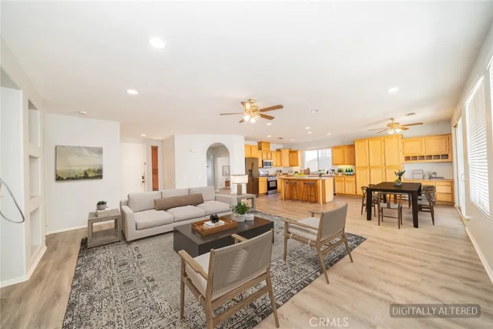 Welcome to 1072 Willow Moon, Beaumont — a beautifully designed single-story home offering space, comfort, and energy efficiency. This 4-bedroom, 2-bath residence sits on a generous 7,405 sq. ft. lot and features a rare 3-car attached garage, perfect for additional parking, storage, or a workshop. Step inside to find warm wood flooring throughout and an open-concept layout that seamlessly connects the kitchen, dining area, and family room. The kitchen offers ample space and functionality, making it the heart of the home. All four bedrooms are spacious and thoughtfully laid out, providing comfort and flexibility for families, guests, or a home office. The primary suite features a well-appointed bathroom complete with a soaking tub and separate standing shower. Step outside to a good size backyard with a covered patio—perfect for outdoor dining, gatherings, or simply relaxing while enjoying the open space. With its functional layout, desirable features, low HOA, and prime location, close to 10 fwy, shopping center, this home is a fantastic opportunity you won’t want to miss!