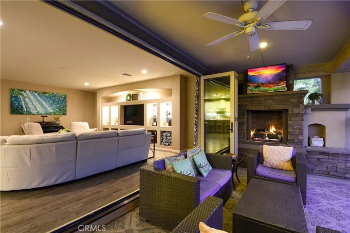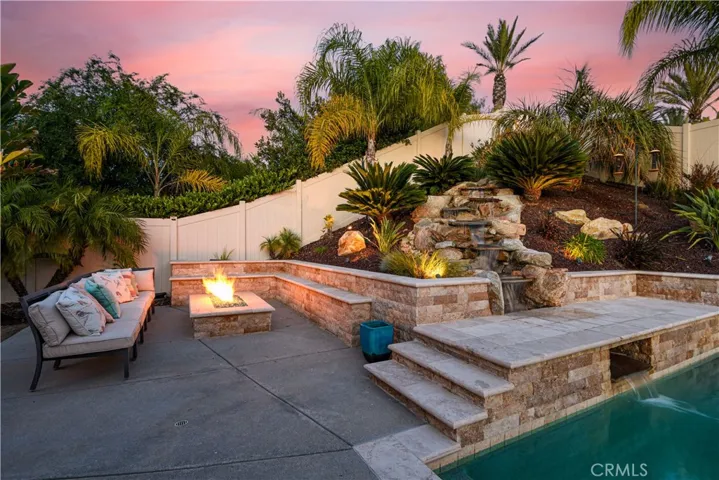 Step outside to your own private resort-style retreat, where a sparkling pool and expansive entertaining areas set the stage for unforgettable gatherings or tranquil evenings under the Southern California sky. A beautifully appointed California Room with a cozy fireplace adds an additional layer of indoor-outdoor living, creating the perfect space to relax or entertain year-round.