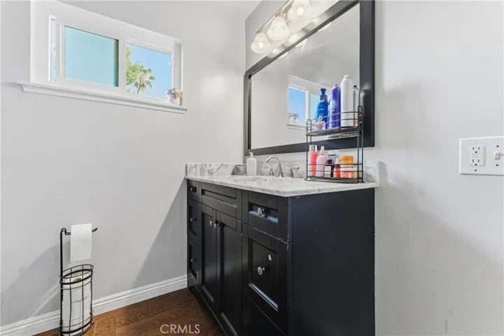 Welcome to this beautifully upgraded and remodeled 4-bedroom, 2-bath home near Lake View Terrace. Featuring plantation shutters and recessed lighting throughout, along with central heating and air, this home offers both comfort and style. The modern kitchen showcases marbled quartz countertops, a full backsplash, soft-close cabinetry, stainless steel appliances, a breakfast bar, and additional counter space ideal for a dry bar setup. The inviting living room features a cozy gas fireplace and opens to an oversized, private backyard—perfect for entertaining—with multiple access points and a large covered patio complete with ceiling fan and lighting. A convenient downstairs bedroom is ideal for guests, in-laws, or roommates, with potential for ADU conversion. Upstairs offers three spacious bedrooms, including two with direct access to a charming balcony/terrace—perfect for enjoying sunset views. A versatile loft area provides additional space for a home office or lounge.