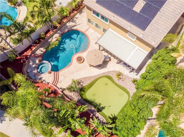 Step outside to your own resort-style oasis. The backyard is an entertainer’s dream, highlighted by a recently updated PebbleTec pool and spa with new tiles, a covered patio for year-round enjoyment, and a custom-built BBQ island with bar seating. Unwind by the fire pit or practice your short game on the private putting green. All surrounded by new vinyl fencing for enhanced privacy and tranquility.