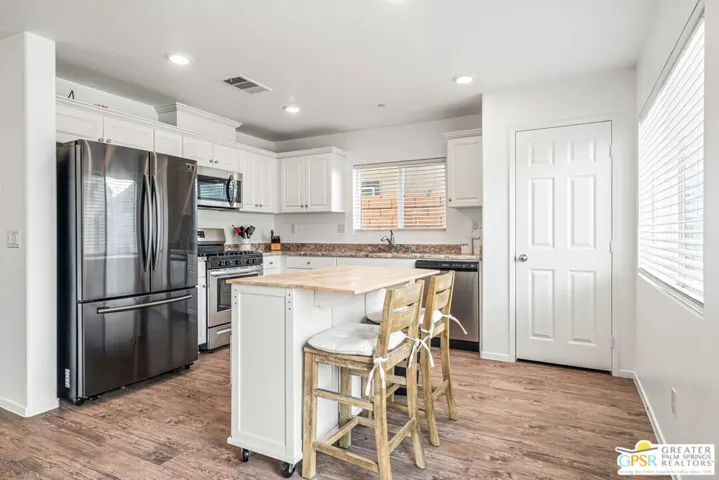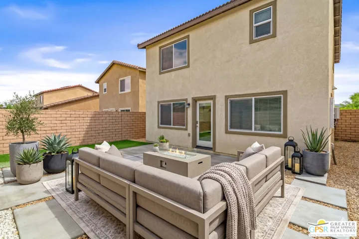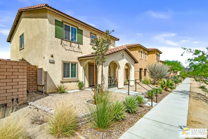 4 bedroom 3 bath at Verano, a beautifully maintained residence located in the highly sought-after master-planned community of Verano in Cathedral City, this energy-efficient home blends contemporary design with the relaxed lifestyle of the Coachella Valley. Spacious Living: This 1,694 sq. ft. detached home features a bright, open floor plan with 4 bedrooms and 3 bathrooms. Open concept great room: living room/dining area/ kitchen. Equipped with smart home features including keyless entry and leased solar, which significantly reduces monthly utility costs, and tankless water heater. Neutral color Vinyl flooring in common areas, carpeted bedrooms, and window treatments. The primary bedroom offers a walk-in closet and a ensuite bathroom with a walk-in shower and double sinks. Upstairs, dedicated laundry room. Enjoy mountain views from the low-maintenance desert-landscaped yard, and a 2-car attached garage is conveniently accessible via a rear alley. Living in Verano provides access to premium amenities with a low monthly HOA fees, including: A 3-acre recreation facility featuring a clubhouse, fitness center, large community pool and spa. On-site pickleball and tennis courts, several acres of open park space, and a children’s “tot lot” playground. Ideally situated near the award-winning Rio Vista Elementary School, rated one of the top schools in the Palm Springs Unified School District. Verano is Perfectly positioned just minutes from downtown Palm Springs, the I-10 freeway, and the West Valley’s best dining, shopping, golf, and everything the desert has to offer.
