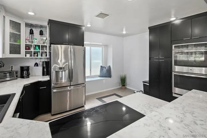 Looking for a property that truly lives like a home? This is it. Single-level living with soaring vaulted ceilings creates a bright, open feel in the main living space, one common wall. French doors in the living room open to a private outdoor space with concrete patio, spacious yard area, and a gas fire pit. The open kitchen was remodeled in 2010 and features quartz countertops, an induction cooktop, and a double oven, including convection. See Supplement. Additional improvements from the remodel include updated dual-pane windows and a renovated bath. The home is equipped with central heating and air conditioning, a tankless water heater, and a whole-house water filtration system. Pull-down ladder access to the attic provides convenient additional storage. Kitchen is open and has room for a breakfast area in addition to the separate dining area. With just 34 units in the development and very little turnover, this is a rare opportunity. Ideally located with easy freeway access and close proximity to shopping and dining.