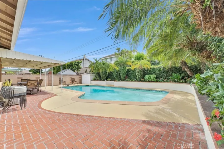 Amazing opportunity to make this spacious Whittier home your own! Step inside to a bright and inviting living room featuring a cozy fireplace and sliding glass doors that open to a private backyard with a sparkling pool, perfect for entertaining or relaxing. The spacious kitchen offers abundant cabinet space, a built in oven and stovetop, and flows seamlessly into the dining area, with elegant French doors connecting to the living room for an open and functional layout.The home features 3 generously sized bedrooms and 2 well appointed bathrooms one with dual sinks and a jetted tub. Additional highlights include central heating and air conditioning, a large indoor laundry room, and a two car attached garage with built in cabinets and durable tile flooring.The backyard is a true retreat, complete with a sparkling pool, mature palm trees, and a covered patio ideal for outdoor gatherings year round. Major upgrades include a newer roof, plumbing, and sewer system, all redone approximately 2.5 years ago, providing peace of mind for years to come.
