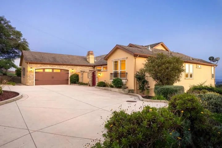Set within the gated Spring Hills community, this elevated hilltop property captures sweeping, unobstructed views across Monterey Bay and the surrounding coastline. The outlook becomes a natural extension of the home, visible from the main living areas, primary suite, and outdoor spaces. The open floor plan is filled with natural light and anchored by large scenic view windows. The chefs kitchen features stainless appliances, bar seating, and seamless flow into the dining and living areas, all positioned to take advantage of the views. Step outside to an expansive entertainment deck, ideal for hosting or enjoying sunsets over the bay. The main residence offers 4 bedrooms and 3 baths, along with a separate legal unit with its own entrance, well suited for multi-generational living or added flexibility. Interior features include LVP flooring, crown molding, and multiple gas fireplaces. Additional highlights include a dedicated billiards space, wet bar, oversized two-car garage, and a spacious primary suite with walk-in closets and a soaking tub. Conveniently located near vineyards, golf, and coastal amenities.
