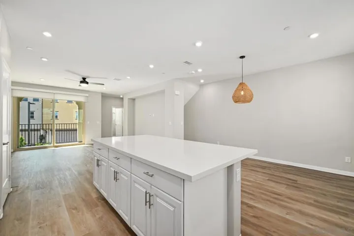 This beautifully designed tri-level townhome in Melrose Heights offers owned solar, guest parking directly in front of the unit, and an attached two-car garage. The open floor plan showcases durable flooring throughout the main living areas, a light-filled living room with balcony access, and a beautifully appointed kitchen featuring quartz countertops, a center island, crisp white cabinetry, stainless steel appliances, and recessed lighting. All bedrooms are thoughtfully located upstairs, including a spacious primary suite complete with an en-suite bathroom and walk-in closet. A full-size Samsung washer and dryer convey with the property for added convenience. Enjoy resort-style community amenities including a pool, spa, BBQ areas, tot lot, and recreation spaces—perfect for both everyday living and entertaining.