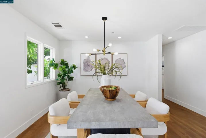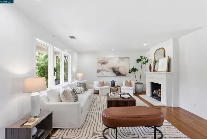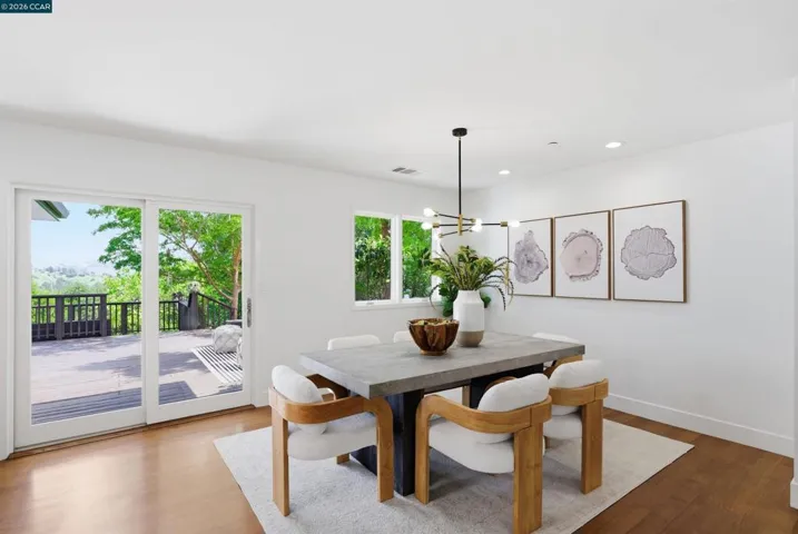 Beautifully updated and thoughtfully designed, this 5-bedroom, 3 full and 2 half bath home offers an ideal blend of comfort, functionality, and modern living on an expansive ~0.5-acre lot in Orinda. A welcoming sitting room greets you upon entry, complete with a nearby powder bath, and flows seamlessly into the dining area and main living spaces. The open-concept layout is filled with natural light and highlighted by beautiful hardwood floors, creating a warm and inviting atmosphere throughout. The updated chef’s kitchen features refreshed cabinetry, a premium Wolf range, and effortless connection to a spacious family room—perfect for everyday living and entertaining. Sliding glass doors open to a stunning backyard with a large deck, turf lawn, mature trees, and a generous storage shed. The main level includes two well-appointed bedrooms, while the lower level offers three additional bedrooms, providing flexibility for guests, home office space, or multi-generational living. The primary suite is a private retreat, complete with a walk-in closet and a versatile office or sitting nook. Additional upgrades include new light fixtures, updated powder room vanities, and owned Tesla solar with Powerwall for energy efficiency and peace of mind. Surrounded by lush, mature landscaping in both the front and back yards, this home offers privacy, space, and a true indoor-outdoor California lifestyle. Ideally located with convenient access to Highway 24, this home is just minutes from top-rated Orinda public schools, neighborhood parks, scenic trails, and the vibrant shopping and dining of Orinda Village and nearby Lafayette. Commuters will appreciate close proximity to BART, offering easy access to San Francisco and beyond.