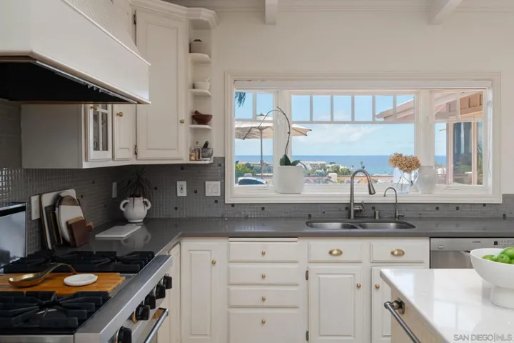 Set on an expansive, lushly landscaped .32 acre lot, on one of the most sought-after streets in North County, this timeless Cape Cod–inspired residence offers a rare combination of privacy, charm, and sweeping, protected ocean views from nearly every room. Perfectly positioned to capture the natural beauty of the coastline, the home is filled with soft coastal light and designed for effortless indoor-outdoor living. A welcoming entry opens to the main living level, where oversized windows, French and sliding doors, frame endless ocean vistas. The thoughtfully designed gourmet kitchen blends classic style with functionality, featuring stone countertops, custom cabinetry, top of the line appliances, bar seating, and an inviting breakfast nook. The kitchen flows seamlessly into the dining, family and living rooms, all of which open to generous wraparound ocean view decks—creating an ideal setting for entertaining, sunset dining, or quiet mornings overlooking the Pacific. The flexible floor plan offers a bedroom and dedicated office on the entry level, perfect for guests or working from home, while the lower level hosts three spacious bedrooms. The primary suite is a true retreat, offering serene ocean views from both the bedroom and the spa-inspired bath, complete with a soaking tub positioned to take in the horizon—an everyday luxury that feels like a private getaway. Additional highlights include a two-car attached garage plus a rare two-car detached garage, offering exceptional flexibility for future use. See supplement… Additional highlights include a two-car attached garage plus a rare two-car detached garage, offering exceptional flexibility for future use. The detached structure presents a compelling opportunity for a potential ADU or guest residence, studio, or expanded living space (buyer to verify). The generous lot also provides room for a pool, further enhancing the property’s potential as a true coastal compound. Opportunities like this are seldom available in such a premier location. Surrounded by mature greenery and set on a deep lot, the property offers a sense of tranquility and space rarely found this close to the coast. Just a short stroll away, enjoy the vibrant shops, cafes, and design showrooms of the Cedros Design District, as well as easy access to the sand and surf at Fletcher Cove. Blending timeless architecture, breathtaking views, and exceptional expansion potential, this is a rare opportunity to own one of Solana Beach’s most compelling coastal properties.