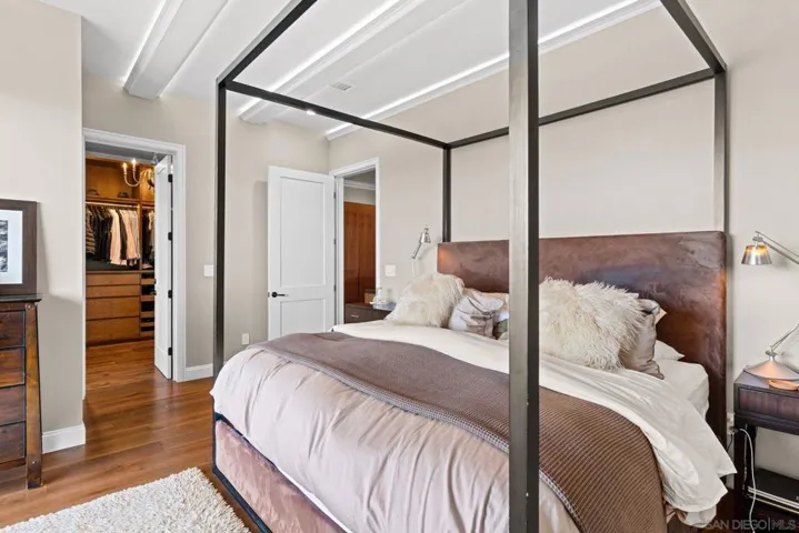 Experience a true custom-built masterpiece in one of the most coveted zip codes in the country. Completed in 2023 on a rare oversized lot, this distinctive Del Mar residence offers over 5,000 sq ft of refined craftsmanship and luxurious detail. The main home spans approx. 3,807 sq ft with 4 bedrooms, 4 full baths, and 2 half baths. The attached ADU adds 1,200 sq ft with 2 bedrooms, 2 baths, a private garage bay, full kitchen, and its own living space—ideal for multigenerational living or a premium rental to offset carrying costs. A huge asset for the savvy buyer. Inside, imported hardwoods blend with stone surfaces flowing from the grand foyer through the living spaces. Every feature is curated—from handcrafted built-ins and bespoke closets to coffered ceilings, oversized baseboards, and designer lighting. The chef’s kitchen impresses with an imported farmhouse sink from England, a custom range hood from Louisiana, and a professional Signature range with gas, induction, and sous vide cooking, paired with a Signature refrigerator and Bosch dishwasher. Outside, the Santa Barbara–style stucco exterior radiates timeless sophistication with lush landscaping and architectural detail. The backyard retreat features a custom pool, terraced turf areas, and multiple outdoor lounges and dining zones perfect for entertaining. Expansive patios capture sweeping east-facing mountain views from sunrise to twilight—making this not just a home, but a generational Del Mar estate of artistry, function, and opportunity.