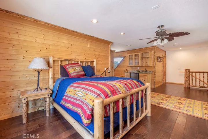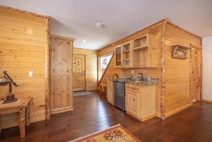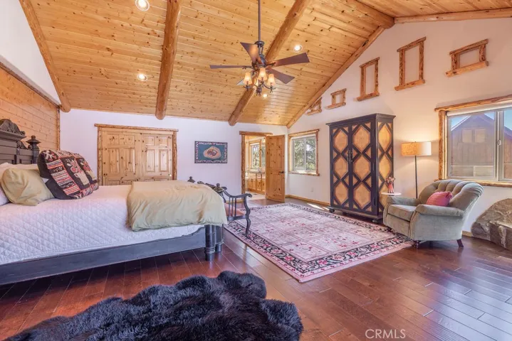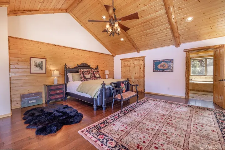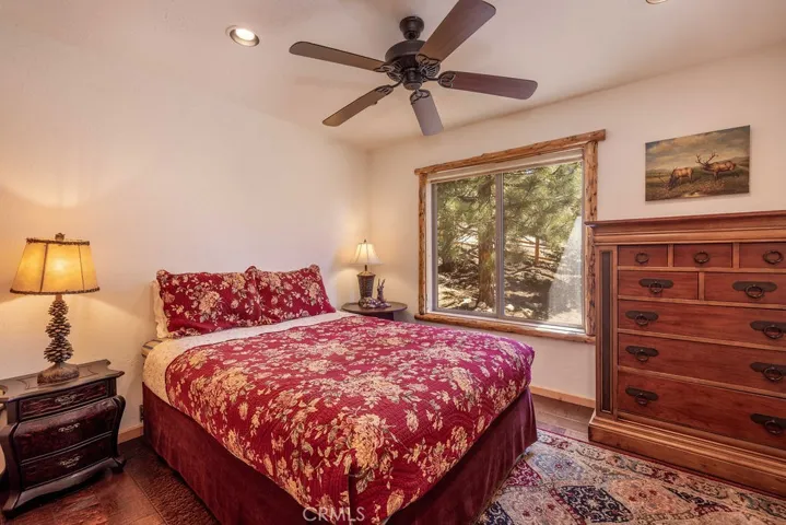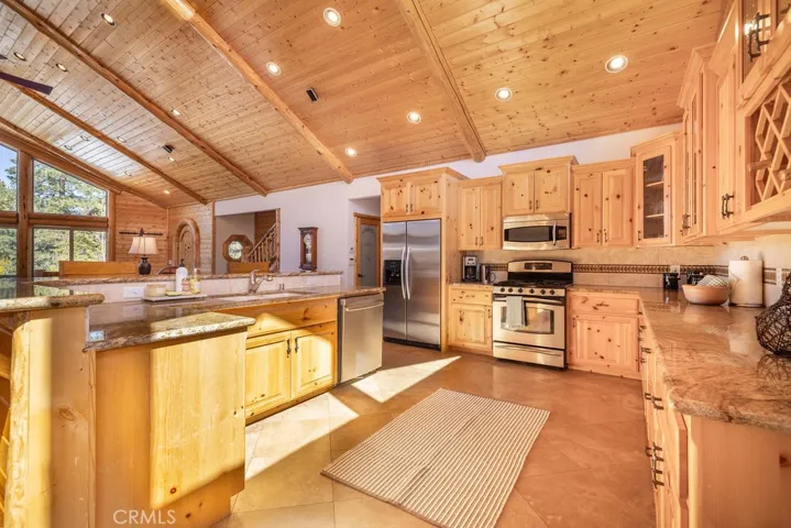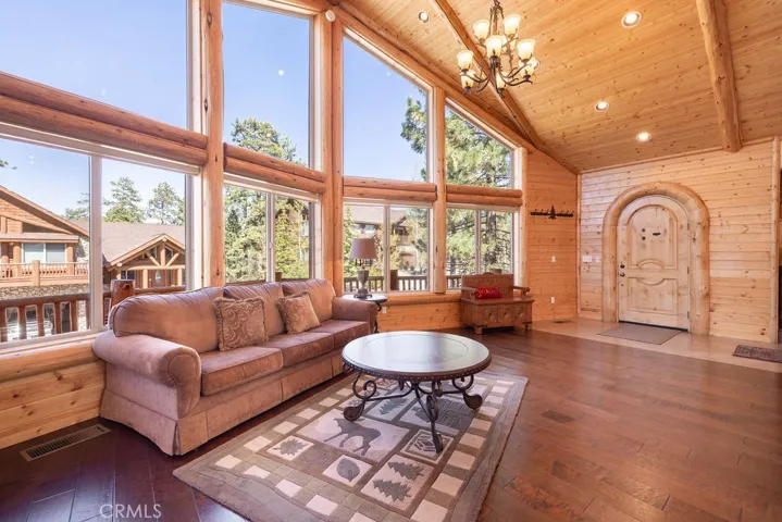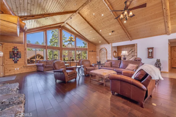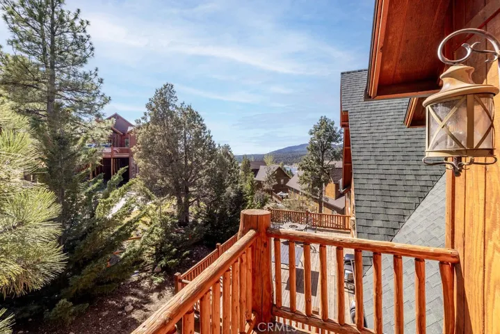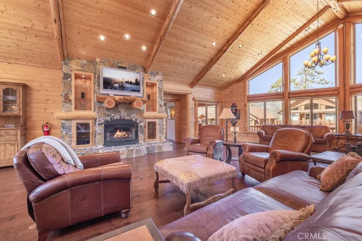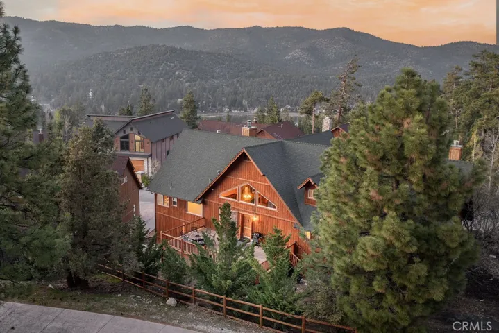 Located in the highly desirable Castle Glen Estates neighborhood, this 4-bedroom, 3.5-bath log-style home offers 2,982 sq ft of mountain living on a 9,000 sq ft lot with partial lake views and a central Big Bear Lake location just around the corner from the lake, forest, paved walking path, boardwalk, ski resorts, shopping, dining, and year-round events at the Convention Center. Built in 2006, the home features a spacious and functional layout highlighted by a stunning great room with soaring vaulted ceilings, expansive windows, and a floor-to-ceiling custom stone fireplace that serves as the focal point of the living space, complemented by rich wood finishes and beautiful log construction throughout. The kitchen opens to the main living area and offers ample cabinetry, counter space, a breakfast bar, a layout ideal for entertaining or hosting. The primary suite includes its own fireplace and generous space with its own front balcony and patio access, while the guest suite also features a fireplace, creating multiple cozy retreat areas within the home. With a total of three fireplaces, the property delivers both comfort and character throughout. Outdoor living is maximized with a front porch, back deck with partial lake views, and three separate balconies that capture the surrounding mountain and neighborhood setting. Additional features include a 3-car garage configuration with a 2-car garage on one side and a separate 1-car garage, providing flexibility for storage, vehicles, or recreational equipment. Castle Glen Estates is known for its quality homes, underground utilities, and one of the most convenient and scenic locations in Big Bear, offering a blend of accessibility, views, and proximity to everything the area has to offer. Whether you’re looking for a full-time home, second home, or investment, this property offers the ideal blend of comfort, character, and mountain living!