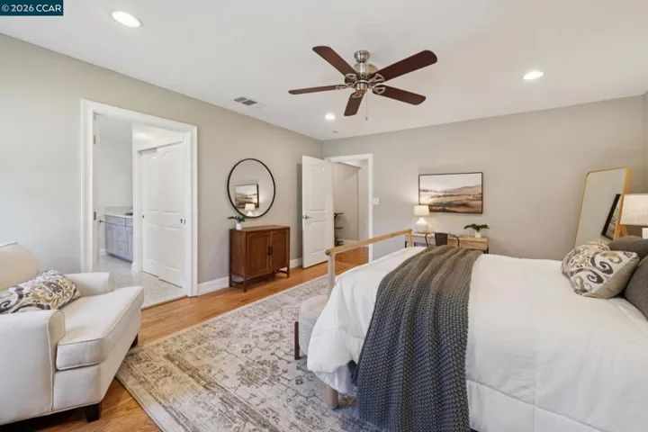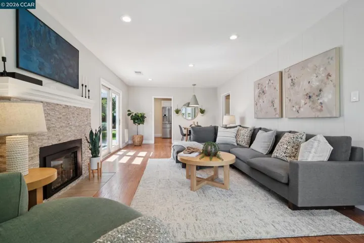 10/10. Absolute Jewel Box of a single level home in the beloved El Dorado Park! Jump in the wayback machine to days when everyone walked around the neighborhood, kids swang in tire swings, bikes were ridden & neighbors knew each other. Holidays are happily celebrated here with lights + decor out for every season. There are few spots like it: you need to drive through it to fully grasp the sunny, nostalgic vibe. The neighborhood is captivating…and the home? Gorgeous, updated + ready for you to move right in! Thoughtfully expanded years back w/ a breathtaking primary suite offering multiple closet areas & spa-like primary bath. Interior laundry room was constructed w/ built-in cabinetry and spacious, finished 2 car garage offers great storage. The interior boasts warm hardwood floors, freshly painted kitchen cabinets & high end lighting courtesy of Walnut Creek Lighting. An inviting family room is light-filled and delightful, w/ a fireplace & charming bay windows creating the quintessential reading nook. Not enough? How about OWNED NEMA2 Solar + a super fast ChargePoint EV charger! The corner lot offers mature trees, sprawling front lawn + beautiful backyard w/ lawn, pergola & garden area. Coveted convenient location near the trail, shopping center & highway 680: ideal for commuters.