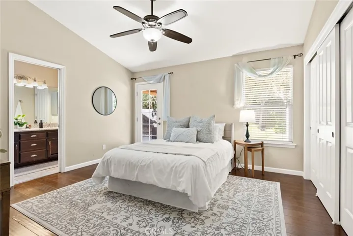Tucked away at the end of a peaceful cul-de-sac, this beautifully maintained 3-bedroom, 2-bath home offers the perfect blend of comfort, style, and functionality. From the moment you arrive, the attractive landscaping and inviting curb appeal set the tone for what’s inside. Step through the front door and into a bright, spacious living room featuring high ceilings, recessed lighting, and a cozy gas fireplace—creating the perfect space to unwind. A charming window seat adds a cozy touch, while wood flooring throughout enhances the home’s warmth and character. The open-concept kitchen is designed with both everyday living and entertaining in mind. It showcases a large island with ample seating, sleek granite countertops, stainless steel appliances, a generous stainless sink, and abundant cabinetry for storage. Just off the kitchen, the dining area provides a welcoming space for meals and gatherings. Down the hallway, you’ll find two well-sized guest bedrooms, each offering plenty of closet space. The guest bathroom includes a tub/shower combination, granite countertops, and updated fixtures for a clean, modern feel. The primary suite is a private retreat filled with natural light, complete with two closets and direct access to the backyard. The en-suite bathroom stands out with dual vanities and an oversized walk-in shower featuring striking large-format tile. Step outside to a spacious backyard designed for relaxation and entertaining. A lush green lawn offers plenty of room for play, BBQs, or soaking up the sun. The large pergola creates a shaded gathering space, while the hot tub adds the perfect finishing touch—ideal for relaxing evenings or hosting friends and family. This move-in-ready home truly has it all—don’t miss your opportunity to see it in person!