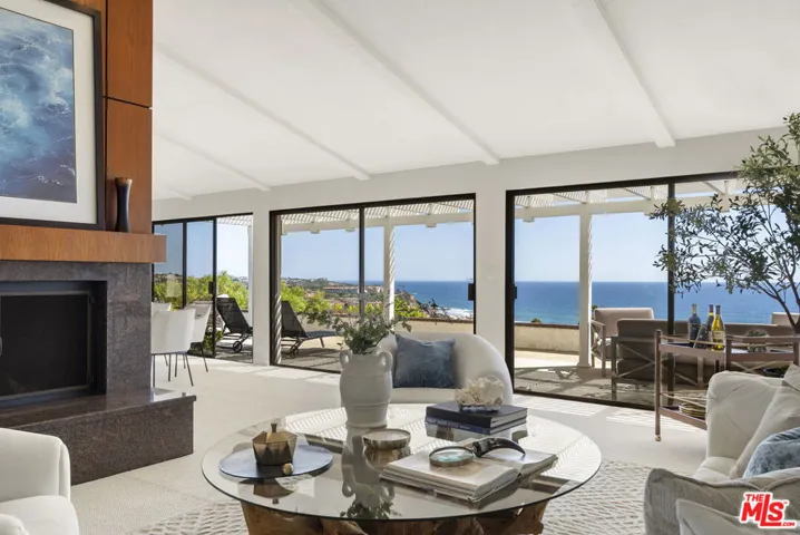 The Pacific, uninterrupted. A single-level home in Monarch Bay Terrace built to frame one of Dana Point’s most commanding coastal panoramas. Set on a peaceful single-loaded street, the experience begins before you step inside. A gated entry and threecar garage open to a courtyard wrapped in lush landscaping, creating a space so serene it feels like your own walled garden. Beyond grand double doors, the ocean reveals itself immediately. A flowing, open floor plan carries sit-down, panoramic views of sand, white water and endless blue through every principal room, with sliding doors throughout dissolving the boundary between interior living and the coastline beyond. The living room is grounded by a dramatic floor-to-ceiling granite and wood fireplace. The family room rises beneath vaulted, open-beamed ceilings. The kitchen, centered on a large central island, opens naturally to both the family room and dining area. All three bedrooms feature sliding doors to the exterior and plantation shutters for privacy and filtered natural light. Wake up to ocean views in your expansive primary suite facing the horizon. A second generous bedroom offers its own en-suite bath, and a third bedroom adjoins a full bath just off the hall. Thoughtful built-ins offer storage, and a dedicated laundry room, new paint, and fresh new Berber carpet complete the interior. Outside, an expansive pergola-covered patio spans the full breadth of the home, offering shaded comfort for year-round entertaining beneath immaculate sunsets and panoramic views. The location is equally ideal minutes from Salt Creek Beach and the shops and restaurants of Monarch Bay Plaza. The RitzCarlton and Waldorf Astoria are also just moments away, with Dana Point Harbor and Laguna Beach Village equidistant in either direction on the PCH. Perfectly positioned and beautifully unhurried, this is a home where the beauty of nature and the convenience of coastal living exist in perfect balance, and the ocean is always in view.