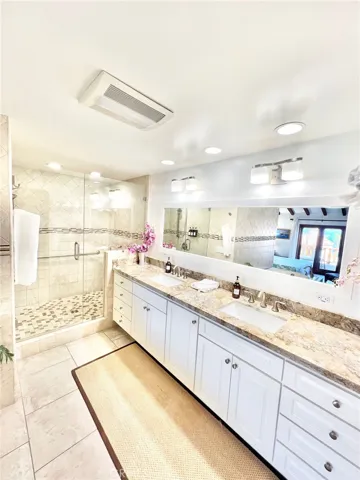 Walk-in tiled showers with custom glass