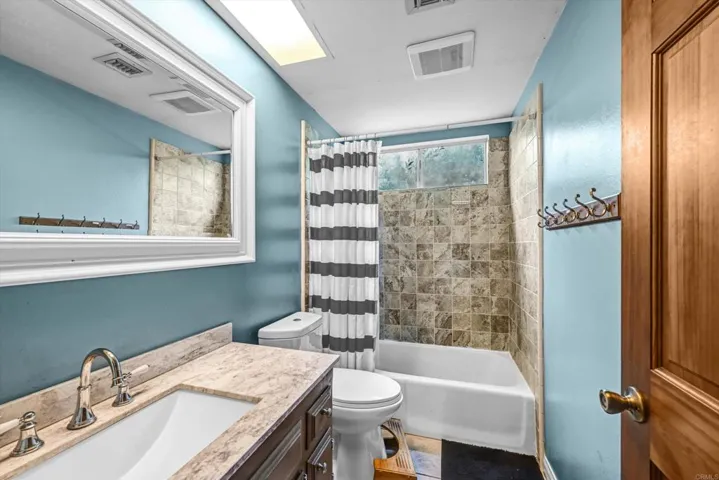 Tucked away on a private half-acre cul-de-sac lot, this beautifully updated home offers panoramic mountain views, a spacious layout and thoughtfully designed indoor-outdoor living. An inviting entry foyer opens to expansive living and dining areas, where a double-sided fireplace creates a warm connection between rooms. Rich wood flooring and abundant natural light enhance the home’s welcoming feel, while new lighting adds a fresh, modern touch throughout. The upgraded kitchen is designed for both function and gathering, featuring a generous six-seat island, separate breakfast nook, and skylight that fills the space with natural light. Just beyond, the family room makes a striking impression with its 15-foot wood-beamed ceilings, stone fireplace and built-in cabinetry. The flexible layout features a first-floor primary suite, two additional bedrooms with a partially remodeled Jack-and-Jill bath, plus an expansive upstairs primary suite with a private balcony and views. Surrounded by mature trees and lush landscaping, the backyard is a true retreat, with a covered patio that leads to a heated saltwater pool and an upper open area ideal for play, a garden or more. Additional highlights include freshly painted exterior, fully owned, paid-off solar and no HOA.