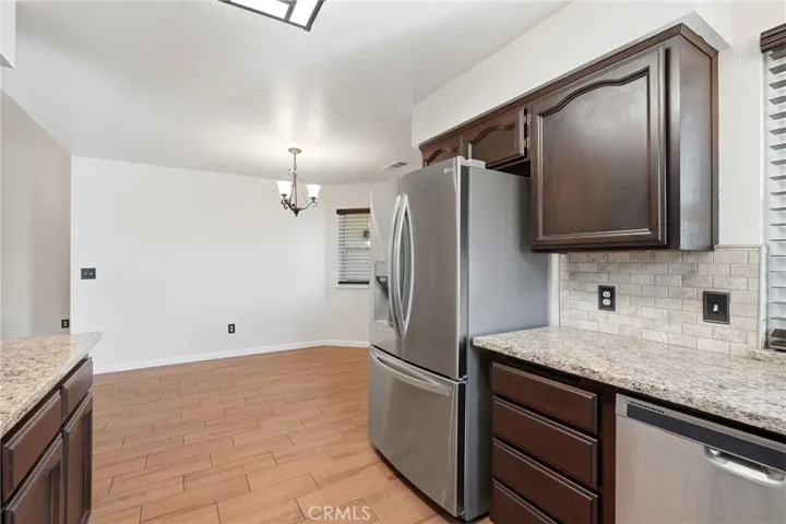 Immaculately maintained and move-in ready, this beautiful 3 bedroom, 2 bathroom home in Northeast Hanford is one you won’t want to miss. Thoughtfully updated throughout, the kitchen features wood-look tile flooring, granite countertops, stainless steel, and upgraded appliances–perfect for both everyday living and entertaining. The spacious living room offers vaulted ceilings, a cozy fireplace, and an upgraded slider that brings in natural light and leads seamlessly to the backyard. The primary suite includes a walk-in closet and a beautifully remodeled shower, creating a comfortable and private retreat. Step outside to a large backyard with a covered patio and grass area–ideal for relaxing, hosting, or enjoying time outdoors. Additional upgrades include newer windows, a newer roof, and a new water heater, giving you peace of mind for years to come. A true gem in Northeast Hanford, combining pride of ownership with modern updates–this home is ready for its next chapter.