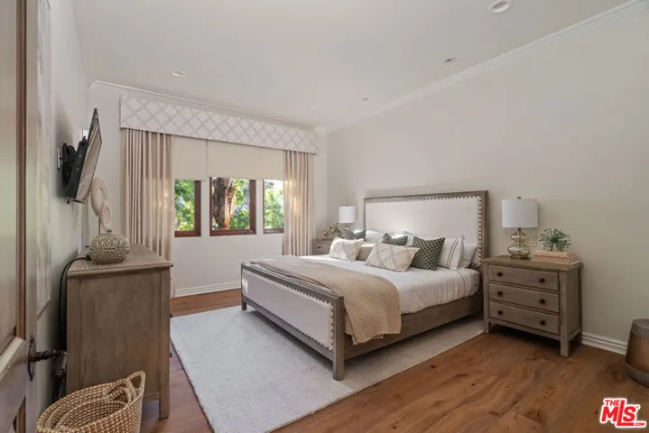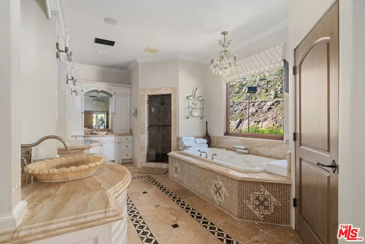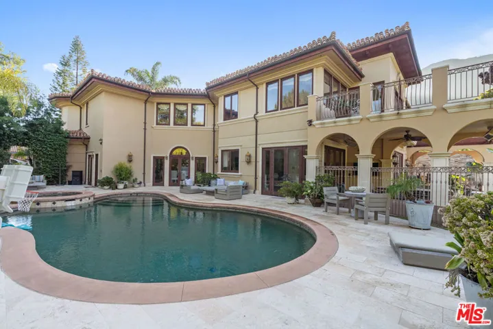 Turnkey Luxury Living in Guard Gated Palisades Country Estates, Fully Furnished, Move In Ready Situated within the prestigious guard gated Palisades Country Estates, this exceptional estate offers approximately 8,100 sq ft on nearly an acre, featuring 5 bedrooms and 7.5 bathrooms, including a convenient poolside bath. Originally built in 2004 and updated in 2020, the home showcases soaring ceilings, a dramatic entry, and seamless indoor outdoor flow. The chef’s kitchen opens to multiple living and dining areas, ideal for both everyday living and upscale entertaining. Interior amenities include an entertainment room with bar, solid mahogany office with coffered ceilings, playroom with student workstations, gym, and wine cellar. Resort style grounds feature a pool, spa, expansive outdoor entertaining areas, lush landscaping, canyon views, and a newly added sports court with pickleball lines. Offered fully furnished with a stocked kitchen, truly move in ready. 24 hour guard gated security. Minutes to Palisades Village and the beach.