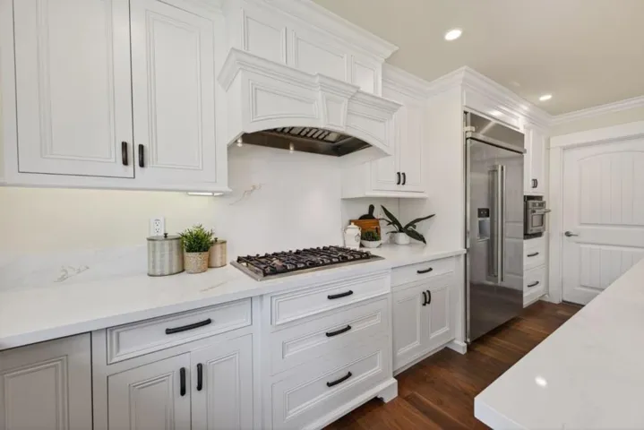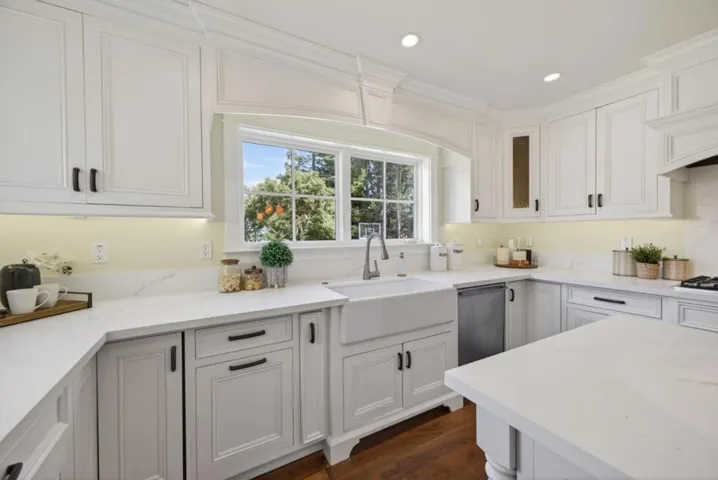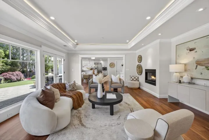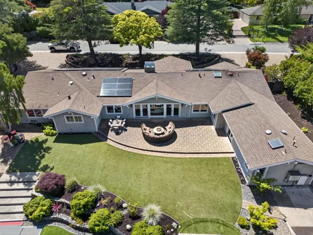 A MUST SEE, BEST OF THE BEST! Set on a flat, park-like half-acre lot, this beautifully renovated and expanded single-story home blends timeless elegance with modern functionality. A circular paver driveway leads to a covered front porch while also extending to a spacious motor court, providing access to a side-entry three-car garage with 2 Tesla EV chargers. Inside, hardwood floors and recessed lighting enhance a thoughtfully designed layout. A formal living room with a dual-sided fireplace–shared with the family room–flows into the formal dining area. The updated chef’s kitchen features quartz countertops, a large island, stainless-steel appliances, abundant cabinetry, and a breakfast nook with a nearby powder room. French doors in the family room open to an expansive patio for seamless indoor-outdoor living. The private wing offers four bedrooms and four updated baths, including a luxurious primary suite with backyard access, dual walk-in closets, & a spa-like bath with soaking tub and glass shower. Grounds include turf lawns, a studio with kitchenette and powder room, a deck, and a pickleball court beneath a sport surface. Solar panels and a Tesla Powerwall add efficiency. 1510 Kingswood Dr represents the very best of Hillsborough living. Don’t miss this turnkey masterpiece.