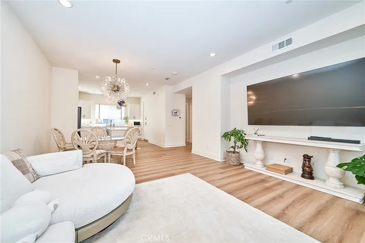 Step into award-winning luxury at Luna in The Landing at Tustin Legacy. This stunning, light-filled contemporary home showcases modern elegance with dramatic vaulted ceilings and a seamless open-concept design ideal for both upscale entertaining and everyday living. Extensively upgraded throughout, the home features designer chandeliers and enhanced lighting, upgraded flooring across all levels, and a fully installed water softener with a whole-house filtration system. The kitchen and bathrooms have been thoughtfully renovated with high-end finishes, including custom cabinetry and spa-inspired walk-in showers, complemented by sleek quartz countertops and premium custom shades that enhance the bright, airy ambiance.