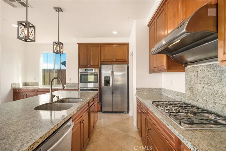 Welcome to one of the most sought-after residences within the prestigious gated community of Cornerstone. This meticulously maintained home offers approximately 2,749 square feet of thoughtfully designed living space, featuring 5 bedrooms and 3 bathrooms on a generous 7,366 square foot lot. Built in 2016, the home seamlessly blends modern functionality with timeless design. The main level showcases a versatile multi-purpose room, ideal as a formal living area, executive home office, private gym, or elegant tearoom. A full bathroom on the first floor enhances convenience, perfectly suited for guests or multi-generational living. At the heart of the home is a beautifully appointed gourmet kitchen, complete with stainless steel appliances, granite countertops, an oversized center island, and a spacious walk-in pantry. The open-concept layout flows effortlessly into the dining and living areas, creating an inviting space ideal for both everyday living and entertaining. Upstairs, you will find four generously sized bedrooms, including a luxurious primary suite designed for comfort and relaxation, featuring dual vanities, a soaking tub, a separate walk-in shower, and an expansive walk-in closet. An additional full bathroom and a spacious loft provide flexibility and functionality for a variety of lifestyles. The backyard is thoughtfully designed for low maintenance while offering ample space for outdoor enjoyment, whether relaxing or hosting gatherings. Residents of Cornerstone enjoy resort-style amenities, including a sparkling pool and spa, BBQ areas, clubhouse, and community park, all within a secure 24-hour gated environment and with a low HOA. Ideally located near award-winning schools, premier shopping and dining destinations such as Victoria Gardens and Ontario Mills, and offering convenient access to major freeways, this exceptional home delivers both luxury and convenience. This is a rare opportunity to own one of the most desirable floor plans in the community. Schedule your private showing today.