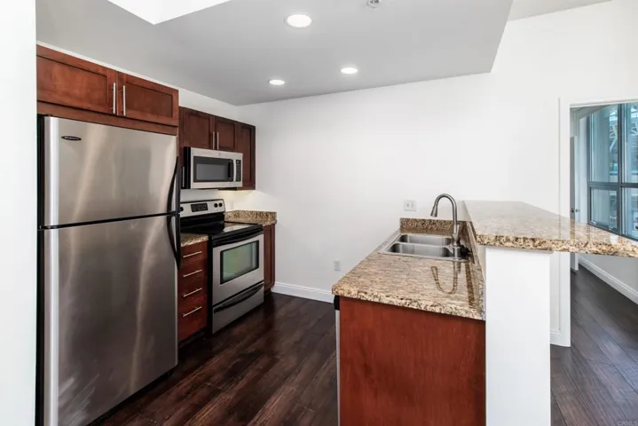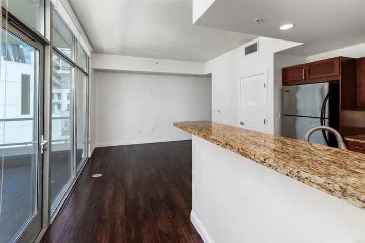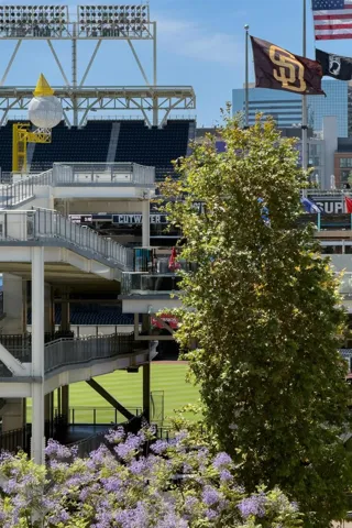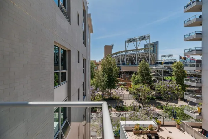 Where game day energy meets everyday living—welcome to your front-row view of Petco Park. Live at the center of it all from Residence #602 at Park Terrace, perfectly positioned in the heart of East Village. This sixth-floor residence offers a rare vantage point overlooking Petco Park with direct views into the ballpark, delivering an unmatched blend of vibrant city living and everyday comfort. Inside, the home features hardwood flooring, granite countertops, and an open layout designed to maximize natural light and showcase the views. Floor-to-ceiling windows and a spacious private balcony create a seamless indoor-outdoor experience, capturing both the energy of game day and the beauty of the downtown skyline. Over the past five years, the condo has been thoughtfully upgraded with a fully remodeled shower including a new bathtub, tile, and fixtures, custom roller shades throughout with blackout shades in the bedroom, a new dishwasher, microwave, and in-unit washer and dryer, plus fresh interior paint completed in 2024—offering a truly turnkey opportunity. Park Terrace enhances the lifestyle with a well-appointed fitness center, resident lounge and game room, and a rooftop terrace with BBQ grills—perfect for entertaining before, during, or after the game while soaking in the electric atmosphere just steps away. The building also features a secure, gated underground parking garage and 24/7 security for added convenience and peace of mind. Step outside and enjoy immediate access to the best of downtown San Diego. Just moments away, the Gaslamp Quarter offers endless dining, nightlife, and entertainment, while scenic waterfront strolls await at Seaport Village and live performances at Rady Shell at Jacobs Park. East Village continues to evolve as one of the city’s most exciting culinary destinations, with local favorites like Callie, Cowboy Star, Neighborhood—home to hidden speakeasies Youngblood and Noble Experiment—and Izola Bakery all nearby. Whether you’re hosting friends for a game, enjoying concerts from the comfort of home, or unwinding in the quieter off-season, this residence offers a truly unique living experience—highlighted by one of the most coveted views in downtown San Diego.